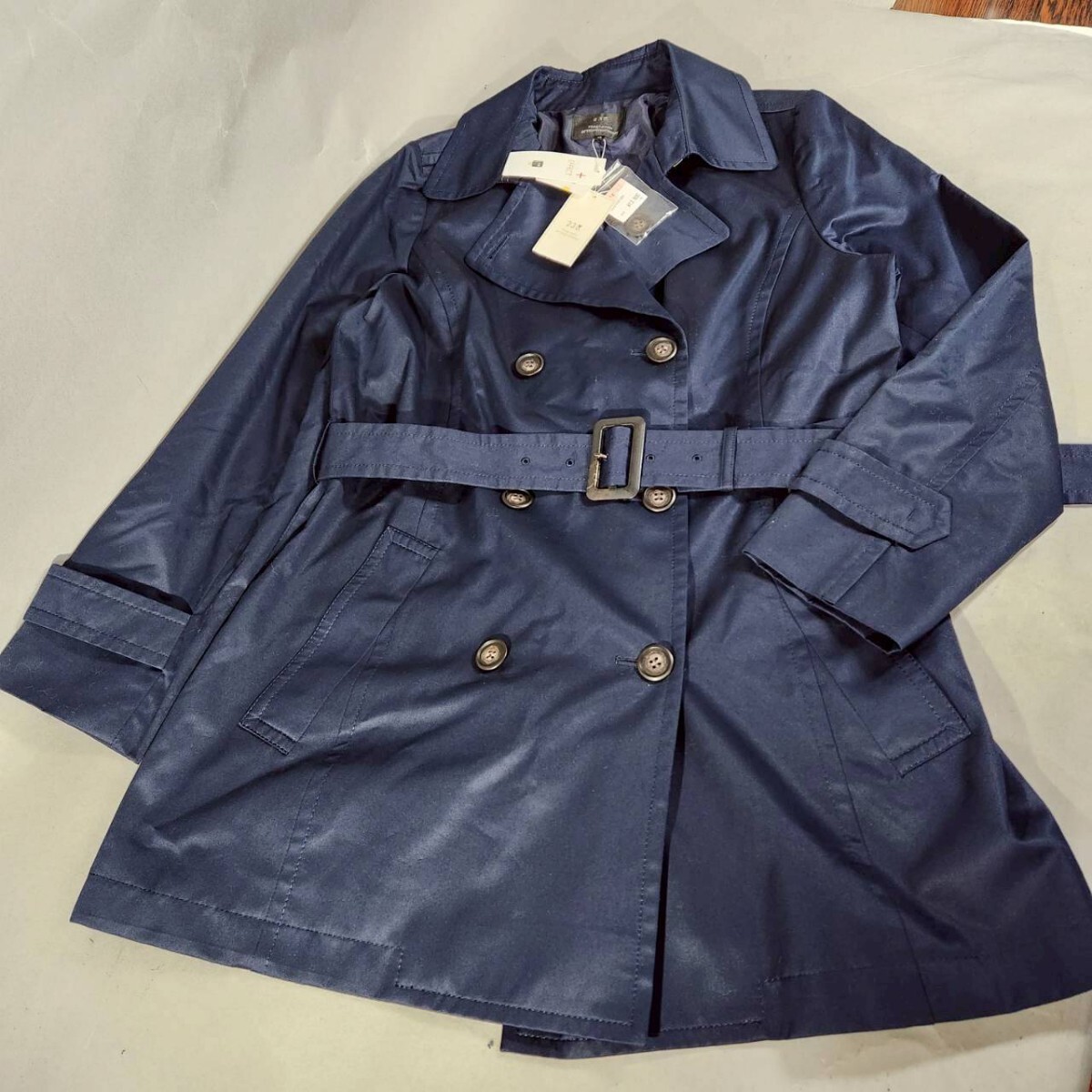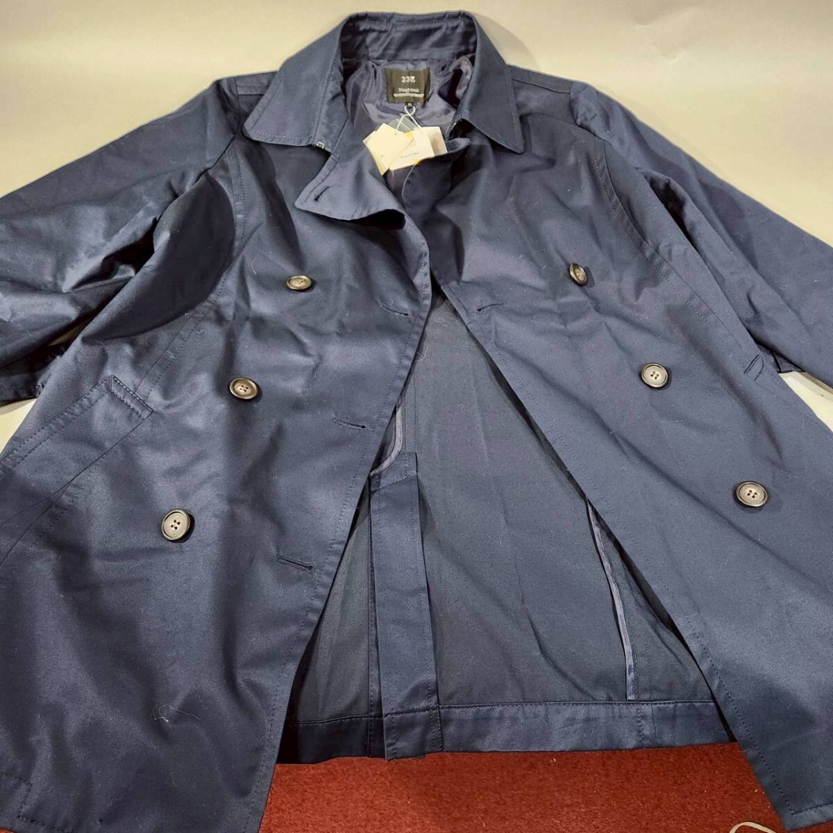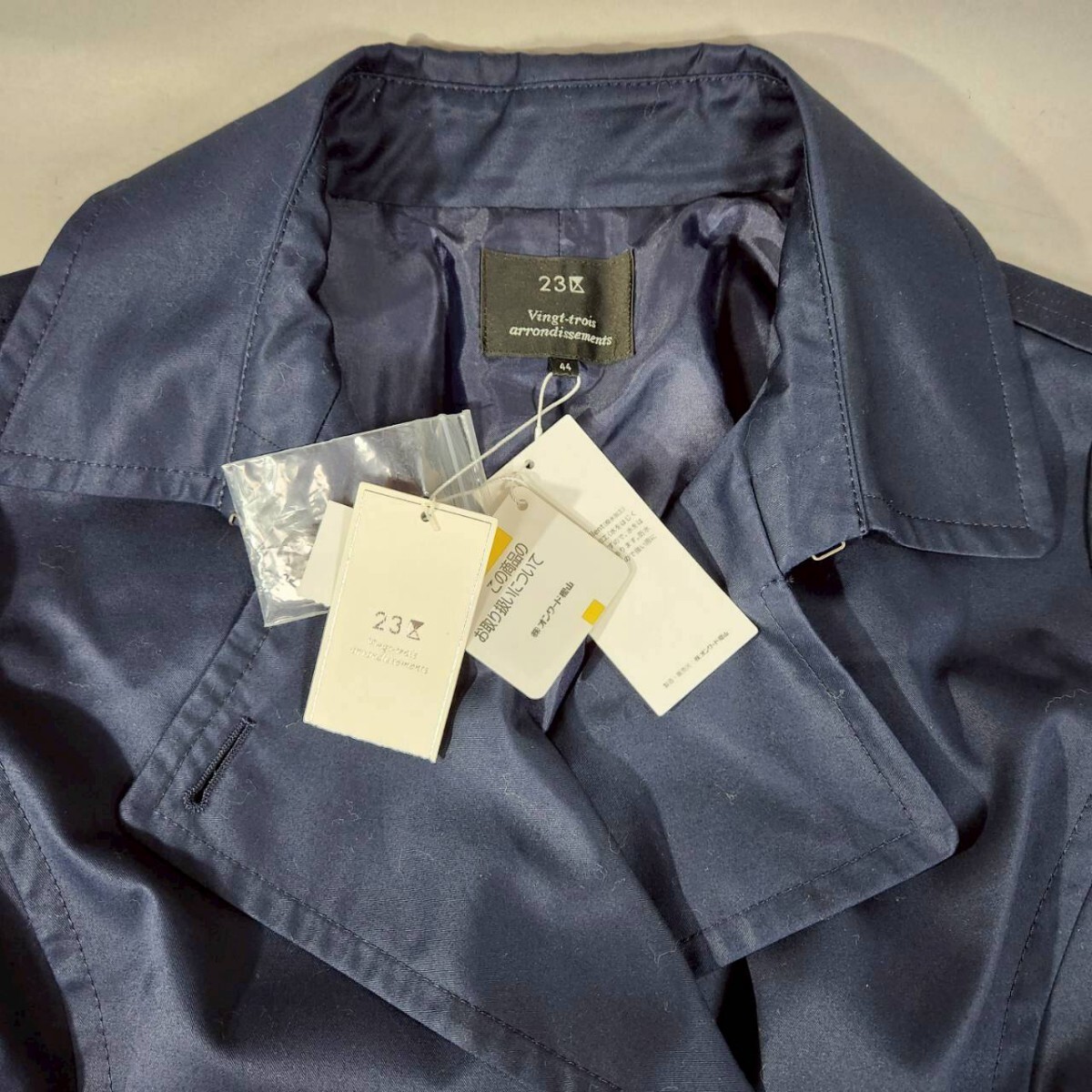 B2133 オンワード樫山 23区 撥水加工 コットン ハーフコート ベルト トレンチコート ネイビー 紺 レディース 44 LL 就活 身丈76cm