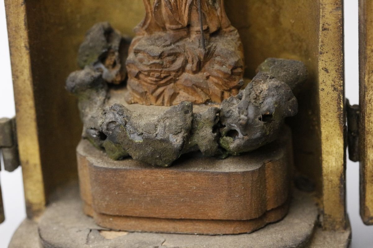 * * * 商品詳細 * * * ここでしか出逢うことのできない唯一の美をご紹介させて頂きます。 荒神は仏・法・僧の三宝を守るという神様で、 家庭や商売の繁盛、家内安全、厄除開運など現世利益をもたらすとされ信仰されています。 経年を経た木肌は重厚感があり、迫力のある姿と相まって力強い風格が感じられます。 小さくも存在感があり、守護神としての凄みのある逸品です。 この機会に是非お求めください。 ■サイズ/横4.5㎝×高8㎝ 厨子:横6.3㎝×高11.5㎝×奥行5㎝ ■状態/スレ、キズ、欠け、剥げ、漆に剥げ、 金具にサビ、パーツ欠損、経年による傷みがございます。 ※写真にてご確認、ご了承の上ご入札下さい。 ![]() * * * 支払詳細 * * * Yahoo!かんたん決済 * * * 発送詳細 * * * 入金確認後3営業日以内に発送致します。 ※直接引き取りも可能です。 60~160サイズにつきましては 佐川急便、ゆうパックのどちらかで発送いたします。 ゆうパック発送の場合、弊社の発送日から追跡サービスに問合せ番号が反映されるまで 約1日ほどお時間がかかりますのでご了承下さい。 佐川急便での発送の場合送料は下記のURLにてご確認下さい。 同梱を希望の場合は梱包サイズを測り直し 佐川急便の定価料金としますので ご了承ください。 * * * 注意事項 * * * 商品到着後、すみやかに受取連絡をお願いします。 また、運送中の破損があった場合は速やかに当社までご連絡下さい。 保険を利用するのに受取連絡後に運送会社による現場での破損状況確認が必要となります。 勝手に返送されますと保険の適用外となりますのでご注意ください。 * * * * * * お問い合わせ:082-236-8669 |