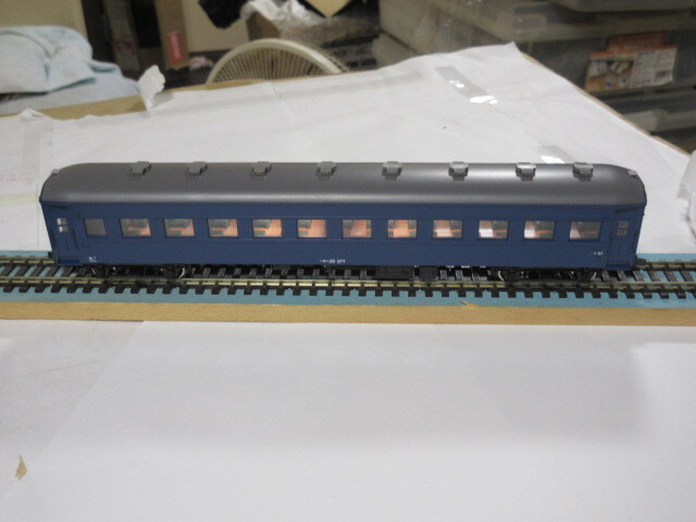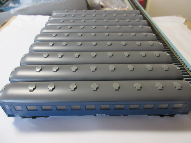 この製品は、オハ35 (KATO製1-511)9両のセット製品です。1両を除きKATO標準の室内灯装着済です。 (製品状態) 購入して、短期間の展示のため室内灯を装着、インレタ・後付け部品等を処理しその後、元箱に入れて保管していた製品で、まったくの未走行品です。インレタ・後付け部品の使用したもの以外、保有しているものは、すべてお付けします。製品自体も、もちろん目立つ欠点は見当たりません。ほぼ新品状態の製品です。 (御注意すべきこと) 以下を熟読願い、御納得いただける方のみご購入にお進みください。 ①鉄道模型に対して全くの初心者の方や軽微な補修・修理が苦手な方は、ご購入をお控えになった方が、無難です。 ②室内灯は、装着済(1両無装備)で点灯の確認をしましたが、KATO模型の構造的な問題で、チラつき・不点灯などがよく発生します。その場合は、お客様の方でご対応お願いいたします。これらの件に対するご苦情は、ご容赦ください。また、記載漏れや、見落としが全く無いとも言えませんので、その際も、ご容赦お願いいたします。 ③ スムーズな走行を維持するため、適宜、微量の潤滑剤を車輪部に施してください。 ④元箱に若干の「スレ」「汚れ」があります。 (実車説明) 国鉄オハ35系客車は、日本国有鉄道の前身である鉄道省が製造した、車体長20m級鋼製客車の形式群です。 「オハ35系」の呼称は国鉄が定めた制式の系列呼称ではなく、1939年(昭和14年)に製造が開始されたスハ33650形(のちのオハ35形)と同様の車体構造をもつ制式鋼製客車を総称する、便宜的な呼称です。 スハ32系客車の改良型として、1930年代後半より各車種が製造された鉄道省制式20 m級鋼製客車です。 基幹形式である三等座席車(オハ35形)は1939年(昭和14年)が製造初年ですが、同様の構造を備える車両としてスハ32系の仕様のままで、オハ35形量産開始後も長期に渡って製造が継続した形式があり、仕様面でも設計・製造技術の進展に従って、漸進的に設計の改良が実施されたため、後年の20系などのように「系列」が明確に区分可能な客車形式とは異なり、スハ32系と本系列ではその境界は明確ではないのが実態でした。 しかしながら「オハ35系」は、車体構造面ではスハ32系の基本構造に従いつつも、従来側窓を600 mm幅→1,000 mm幅を標準とするように変更され、室内の採光性の向上と窓枠の製造工程の削減が両立させたり、台枠などを中心に過剰な補強材の省略が進んで軽量化され、基幹形式である三等座席車では重量区分の1ランク引き下げが実現した。従来リベット接合が多用されていた組み立てについても溶接への移行が進めるなどの改良がなされました。 オハ35は、オハ35系の中心的存在となる三等車で、1939年から1943年と1946年から1948年にかけて各工場で合計1,301両が製造されました。