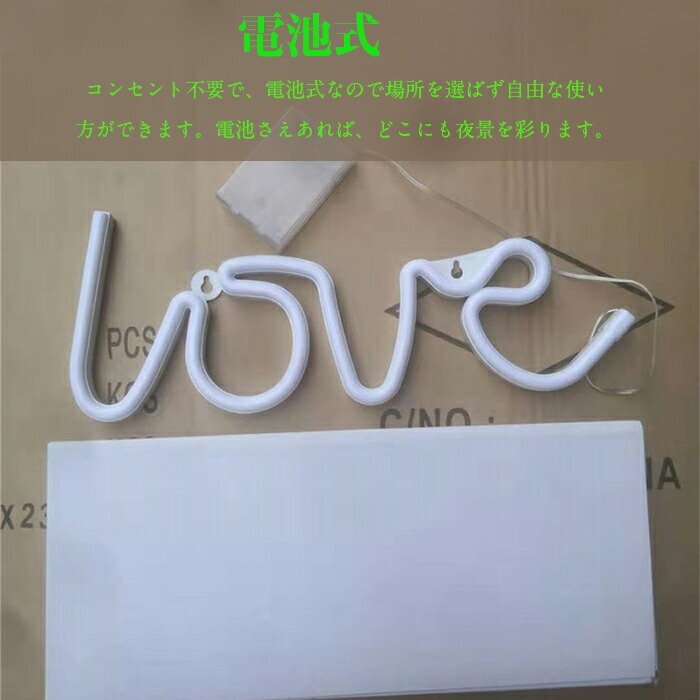 ネオンライト LOVEネオンサイン LEDネオン管 雰囲気作作動LEDライト電池式 壁掛アート 誕生日部屋飾り ステージ パーカフェ☆2色選択/1点