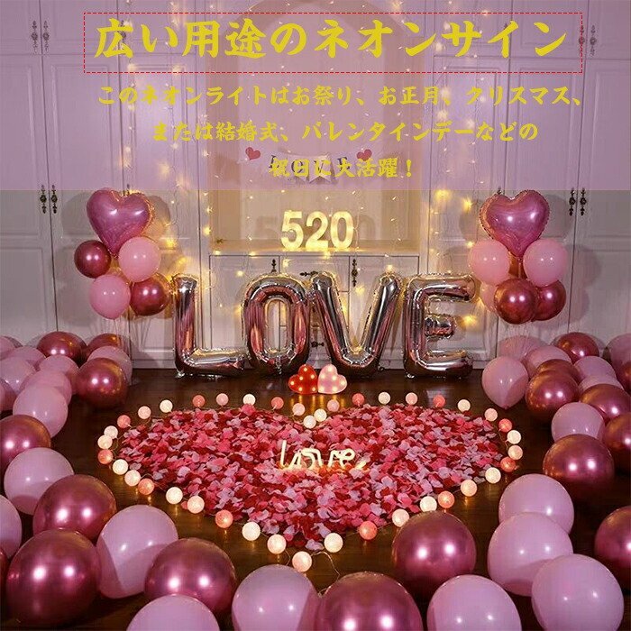 【広い用途のネオンサイン】このネオンライトはお祭り、お正月、クリスマス、バレンタインデーなどの祝日に大活躍!または結婚式、クラブ、コンサート、カラオケ、ファッションショー、ダンスホールなどのシーンはおススメです。ご自宅の庭やベランダ、玄関はもちろん適し、特にお店周り、ホテル、商業ビル、レストランにも最適です。