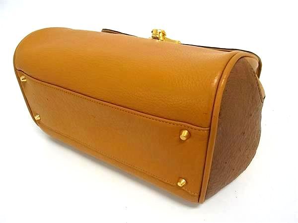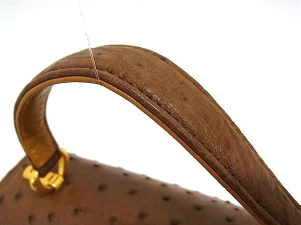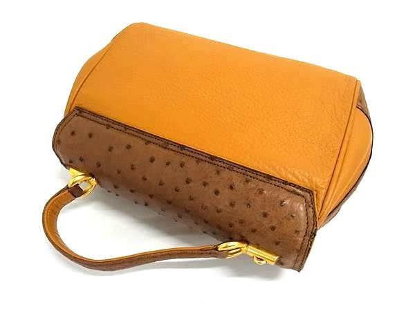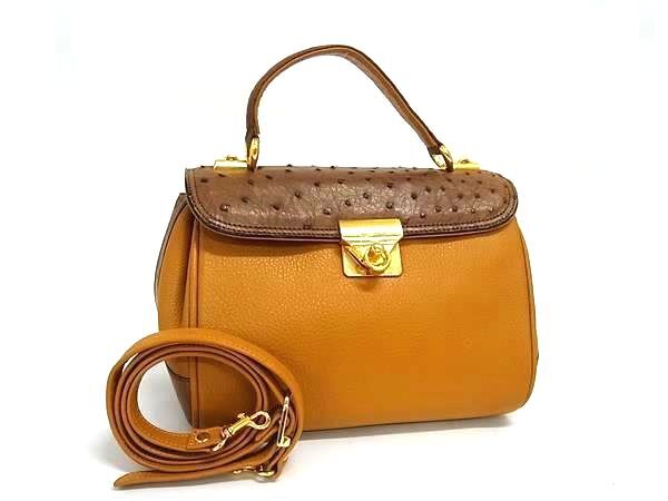 1円 ■美品■ レザー×オーストリッチ 2WAY ショルダーバッグ ハンドバッグ レディース ブラウン系 BQ1493