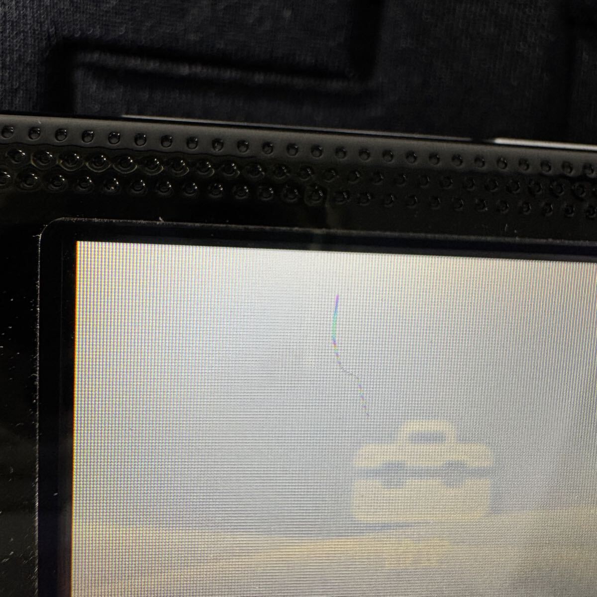 画面の左上付近に、縦長の線キズが見られます。(写真3枚目参照) ゲームプレイ中はあまり気になりませんでしたが、白い画面などでは視認できます。