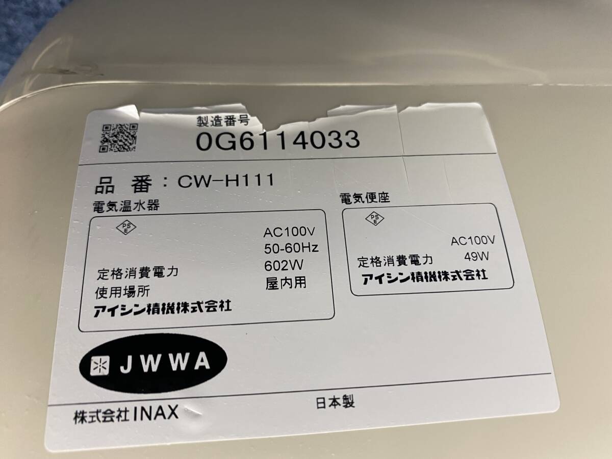 【中古】INAX(イナックス) 電気温水便座 ウォシュレット・シャワートイレ「CW-H111」☆#BN8(オフホワイト)☆直接引き取り可