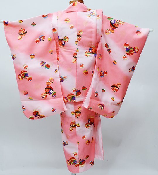 サイズ | ■着物 ・被布丈約48cm ・裄丈約40cm(3.5cmの上げ、7cmのばすことが可能) ・袖丈約57cm ・着物丈約93cm ■草履18cm(フリーサイズ) 適合身長83cm~105cm ※着丈=背中首のゴリゴリ部分から、足くるぶしまでの長さ ※裄丈=腕を斜め45度下げた状態で、背中首ゴリゴリ部分から、肩上を通して、手くるぶしまでの長さ ※身長87cm~96cmであれば特に直さずともこのままでご着用いただけるかと思います ※はじめから肩上げがとられているので解いて数センチ伸ばす(丈出し)ことも可能です。 ※腰上げはとられていないため腰ひもで着付け補正をいただければと思います。 |
