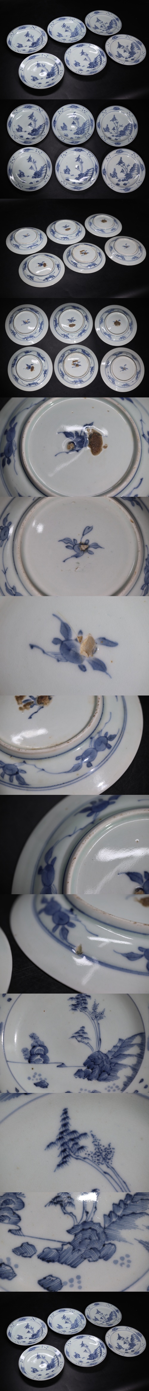 | 時代 古伊万里 染付 風景文 皿 六客 / 伊万里 有田 煎茶道具 検索: 初期伊万里 柿右衛門 藍九谷 .G2717 |