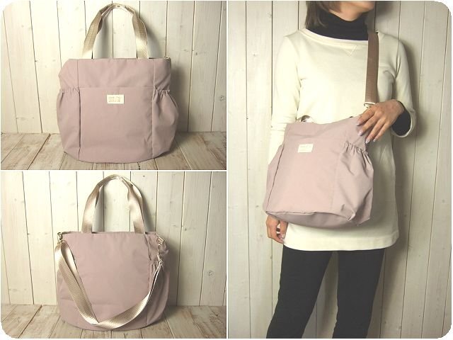 ・軽くてサラッとした触り心地の洗えるナイロン素材を使用した、レガートラルゴ【Legato Largo】の2WAYトートバッグです。メインポケットはシングルファスナータイプ、前面にオープンポケットが1つ、両サイドにゴムの入ったギャザーポケットがあり、内側にもオープンポケットが2つ付いています。持ち手は長さ46センチで、スナップでまとめることができます。付属のショルダーストラップは幅3.2センチで長さは65~120センチの間で調節可能で斜め掛けもできます。