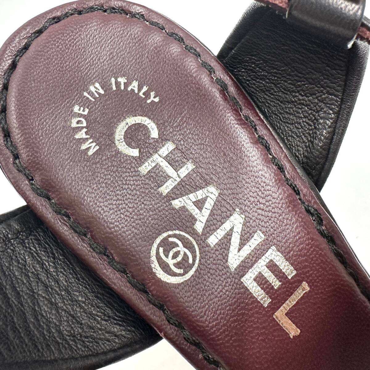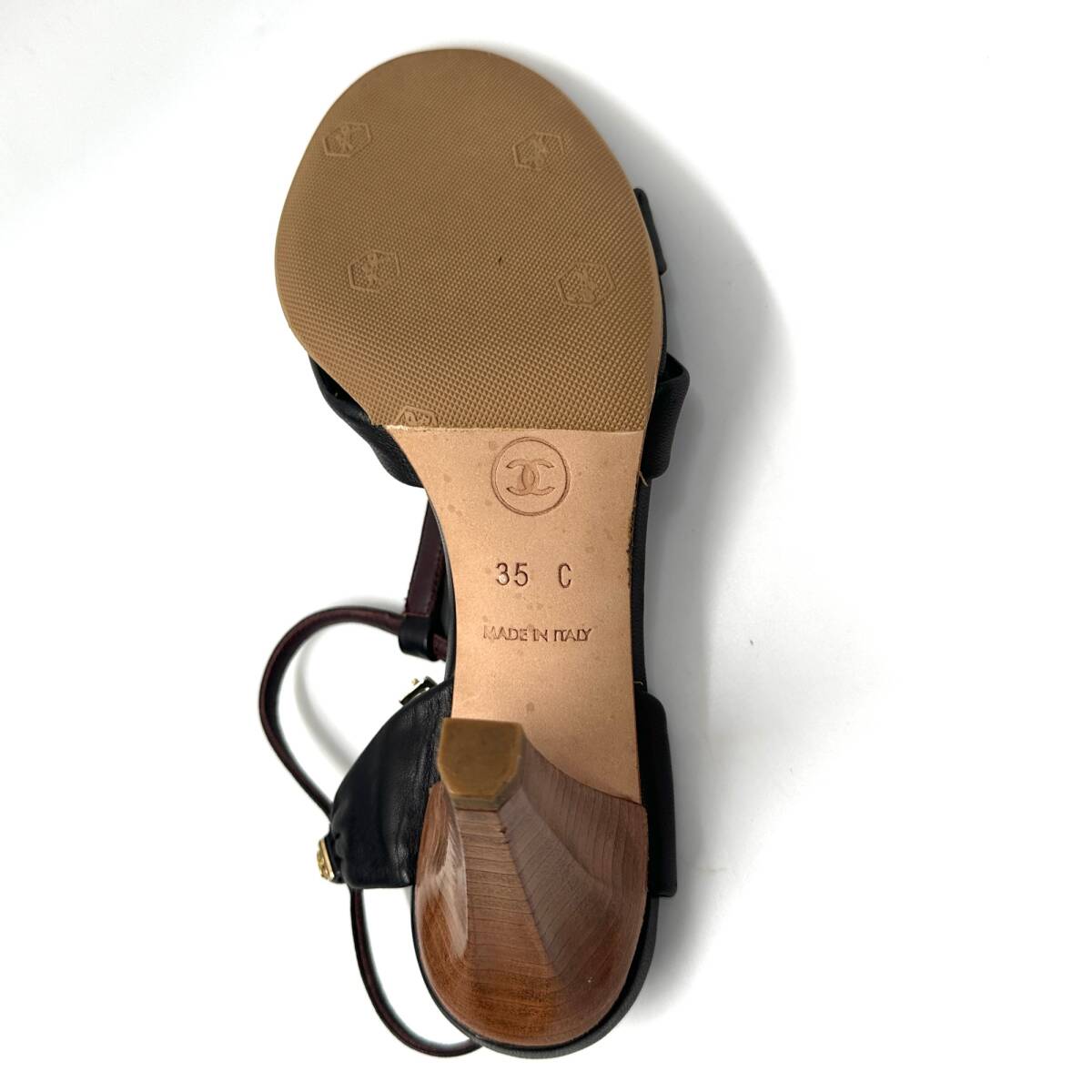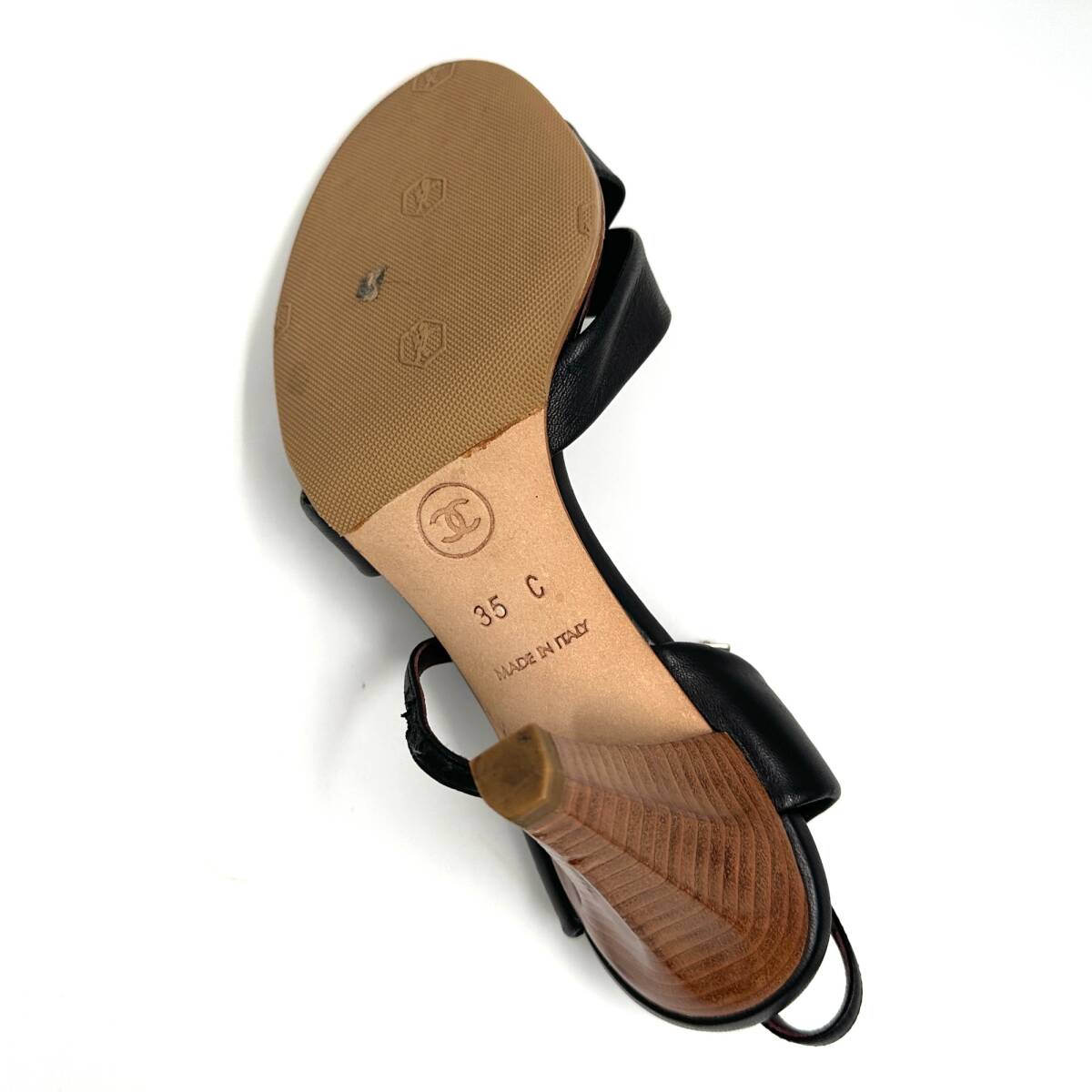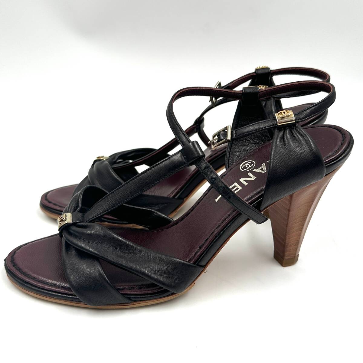 【1円スタート】 CHANEL シャネル ヒールストラップサンダル ココマーク CC ロゴ レザー ブラック ブラウン系 サイズ35 ゴールド金具