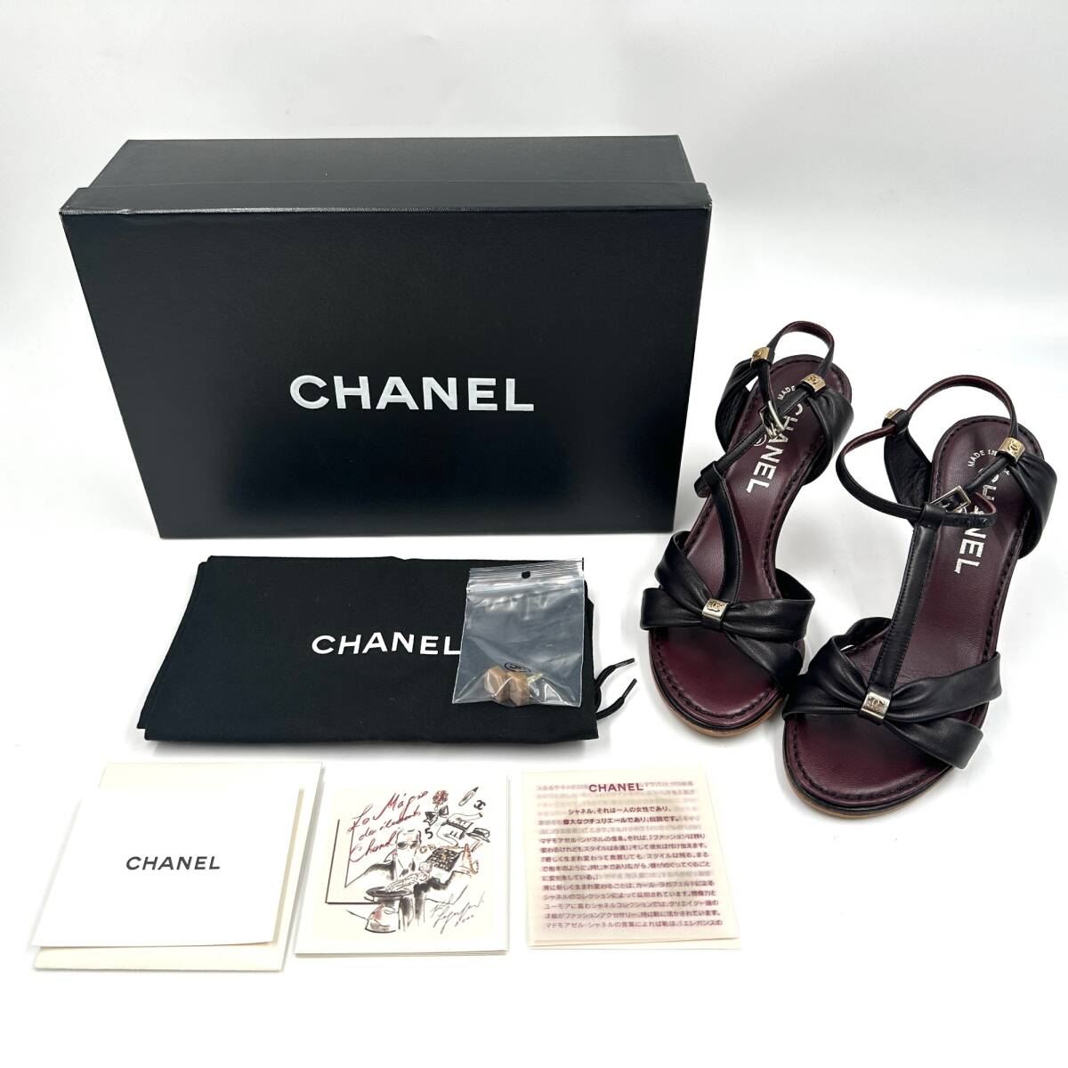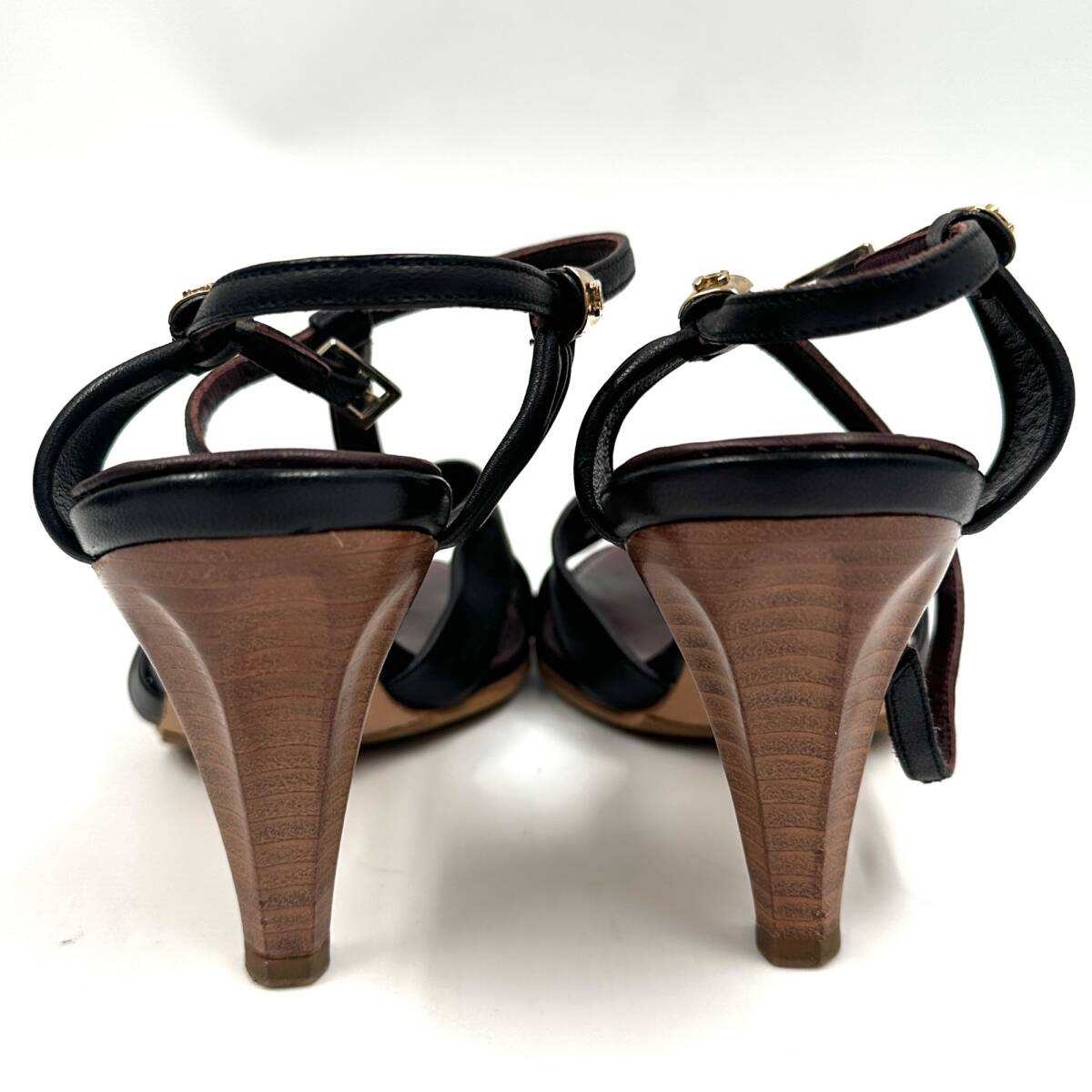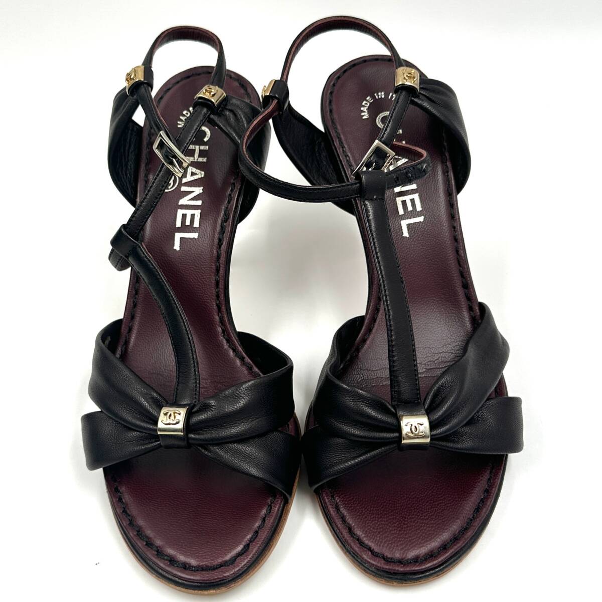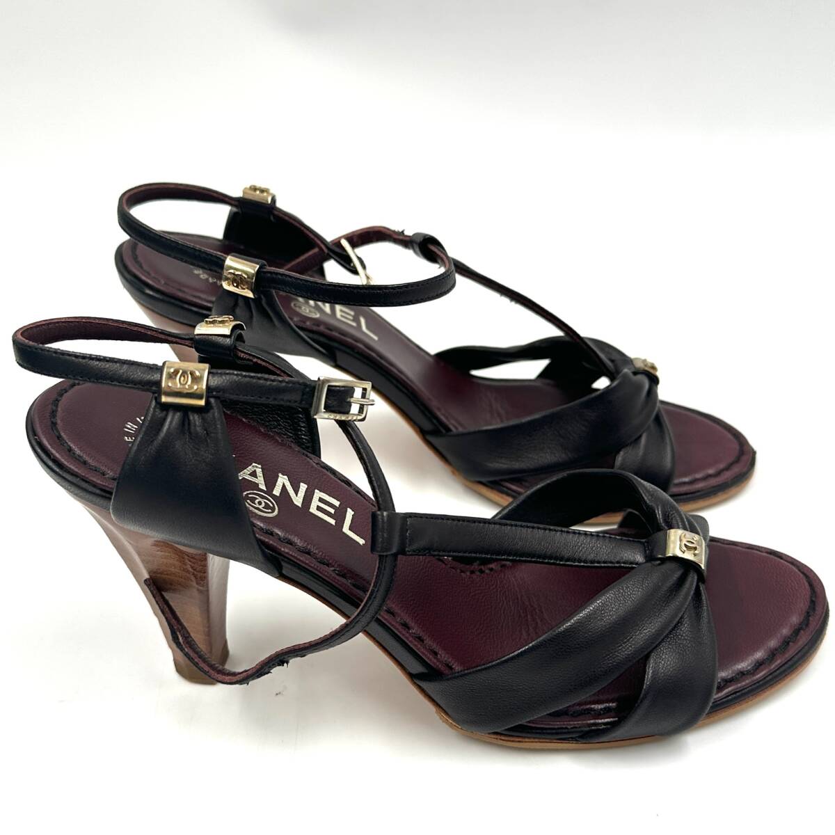 【1円スタート】 CHANEL シャネル ヒールストラップサンダル ココマーク CC ロゴ レザー ブラック ブラウン系 サイズ35 ゴールド金具