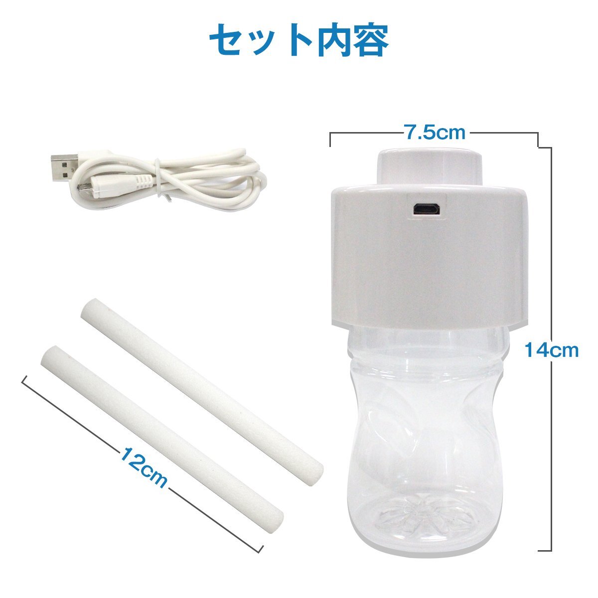 超音波ミニ加湿器 USB充電 ペットボトル加湿器 ホワイト/白