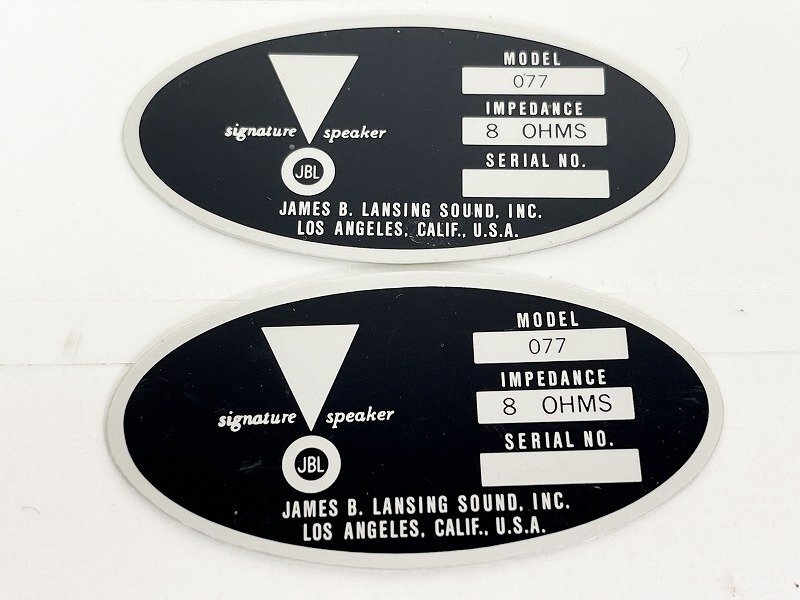 JBL 077 プレート 2枚です。 こちらは複製品となります。 複数ございますので、同等品の発送となります。 ・サイズ:62.7×31.7(mm) |