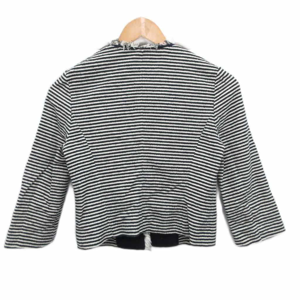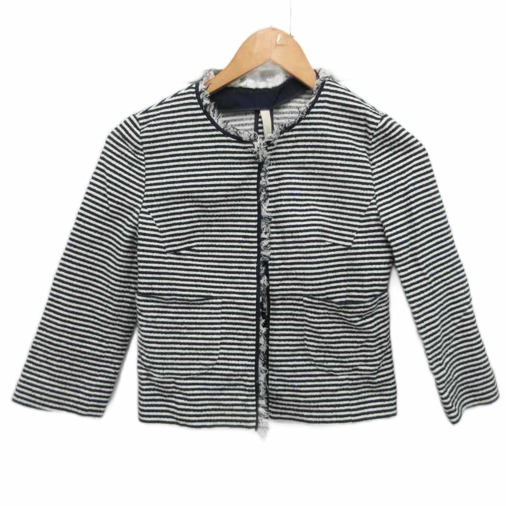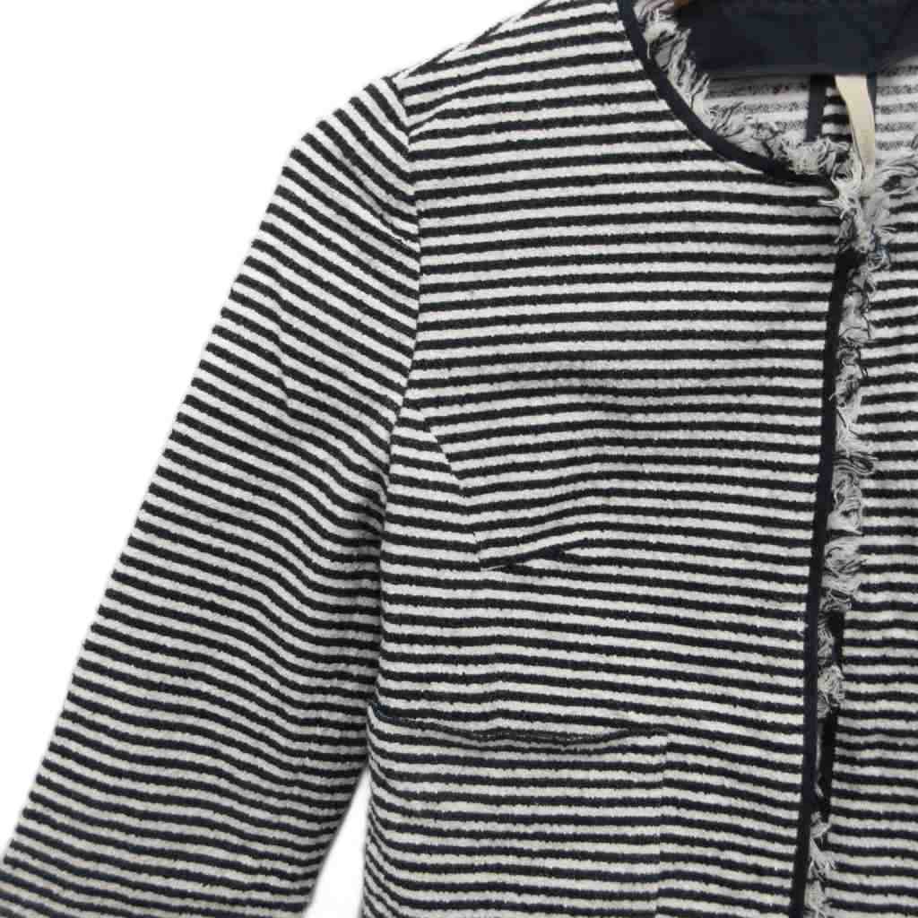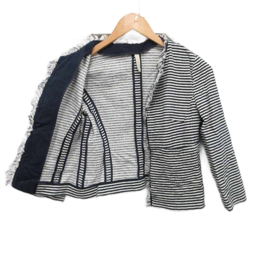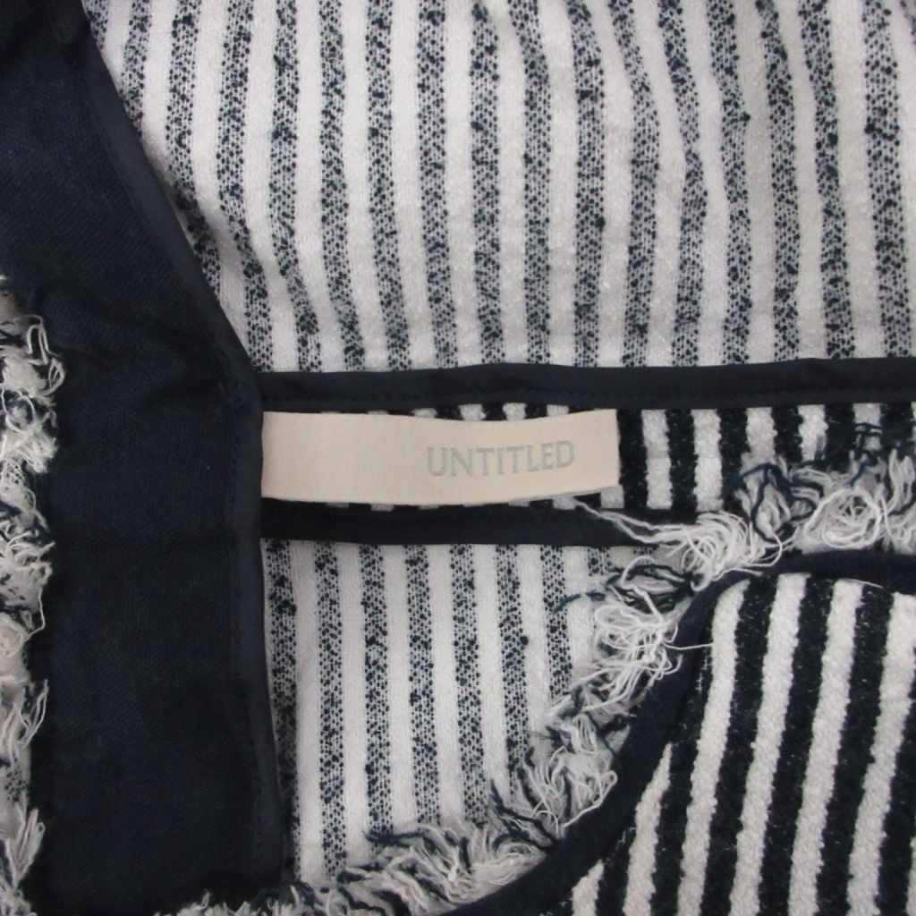 アンタイトル UNTITLED ノーカラージャケット テーラードジャケット ボーダー フリンジ 2 M 白 ホワイト 紺 ネイビー JI153-42304JB