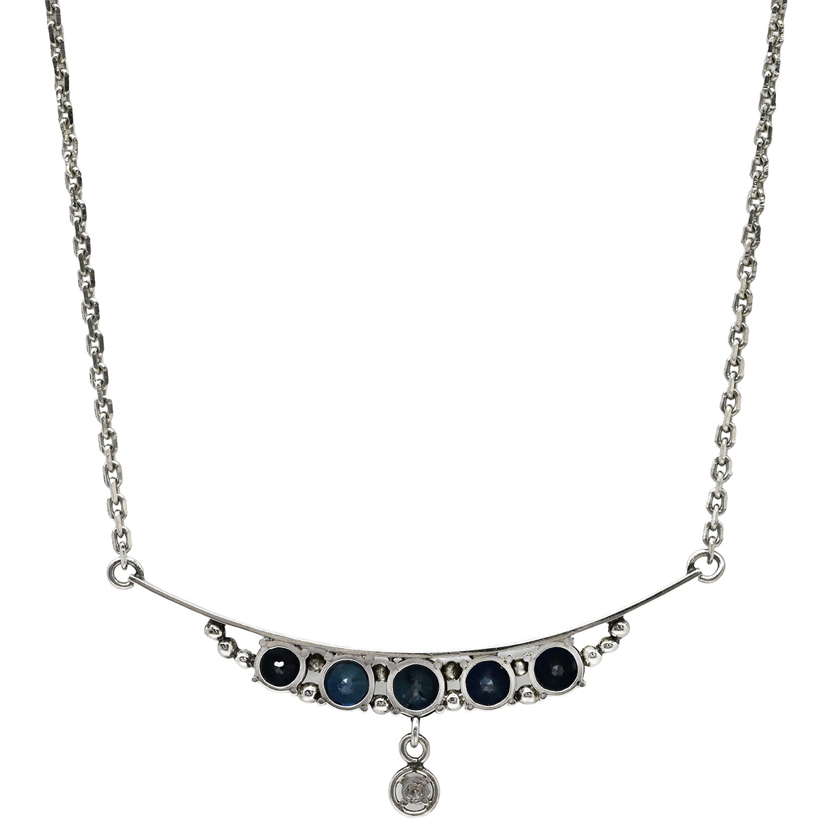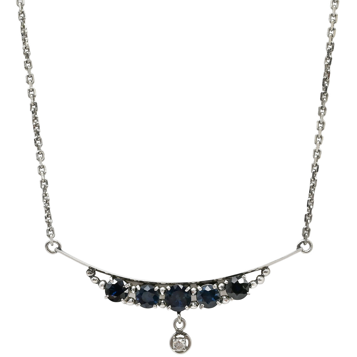 ネックレス サファイア ダイヤ ペンダント Pt900 シルバー 中古