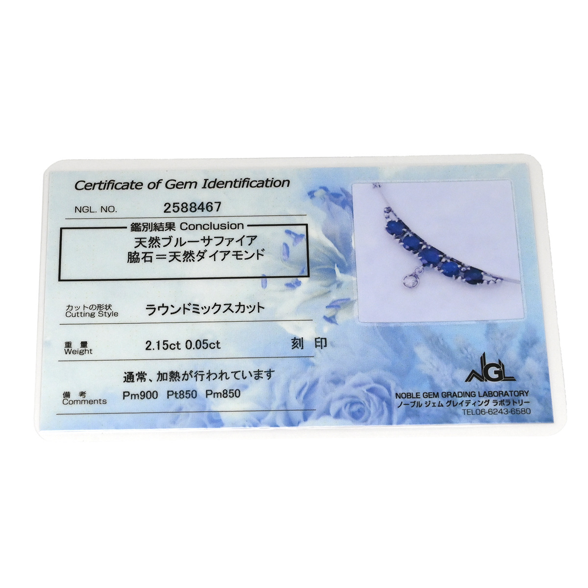 石目:サファイアctダイヤモンドct2.15・0.05の刻印ありct