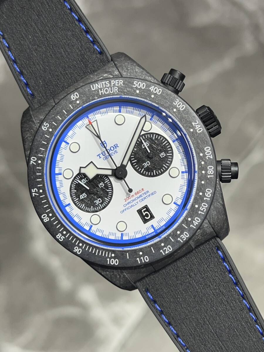 ダイヤルはホワイト×ブラックのレーシングテイスト溢れるカラーリングにブルーのチームカラーを加える事により疾走感を感じるダイヤルになっております。