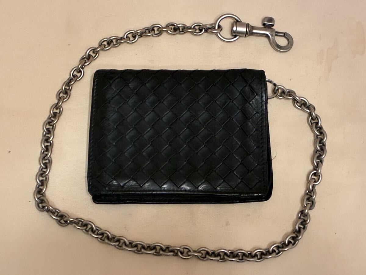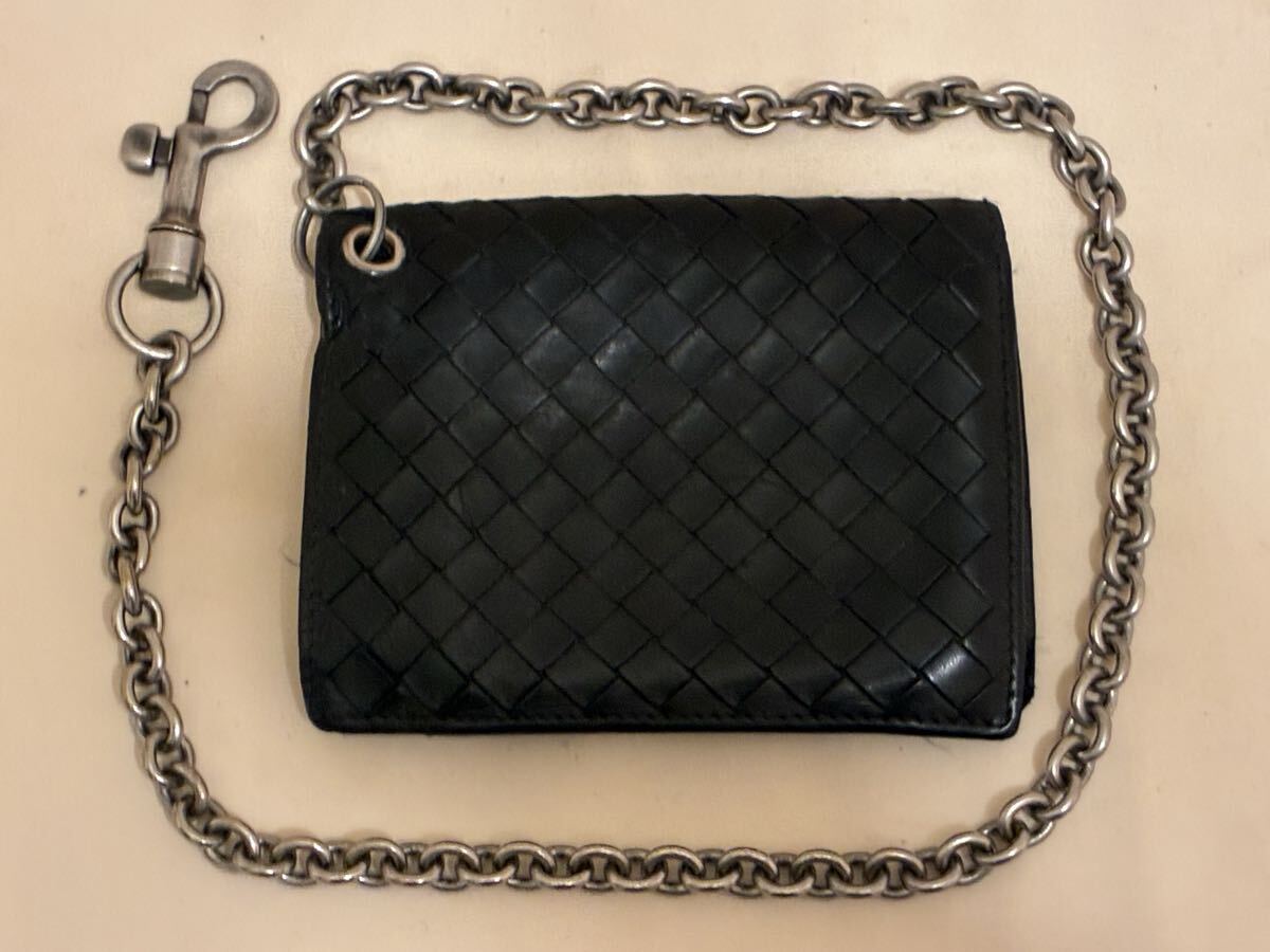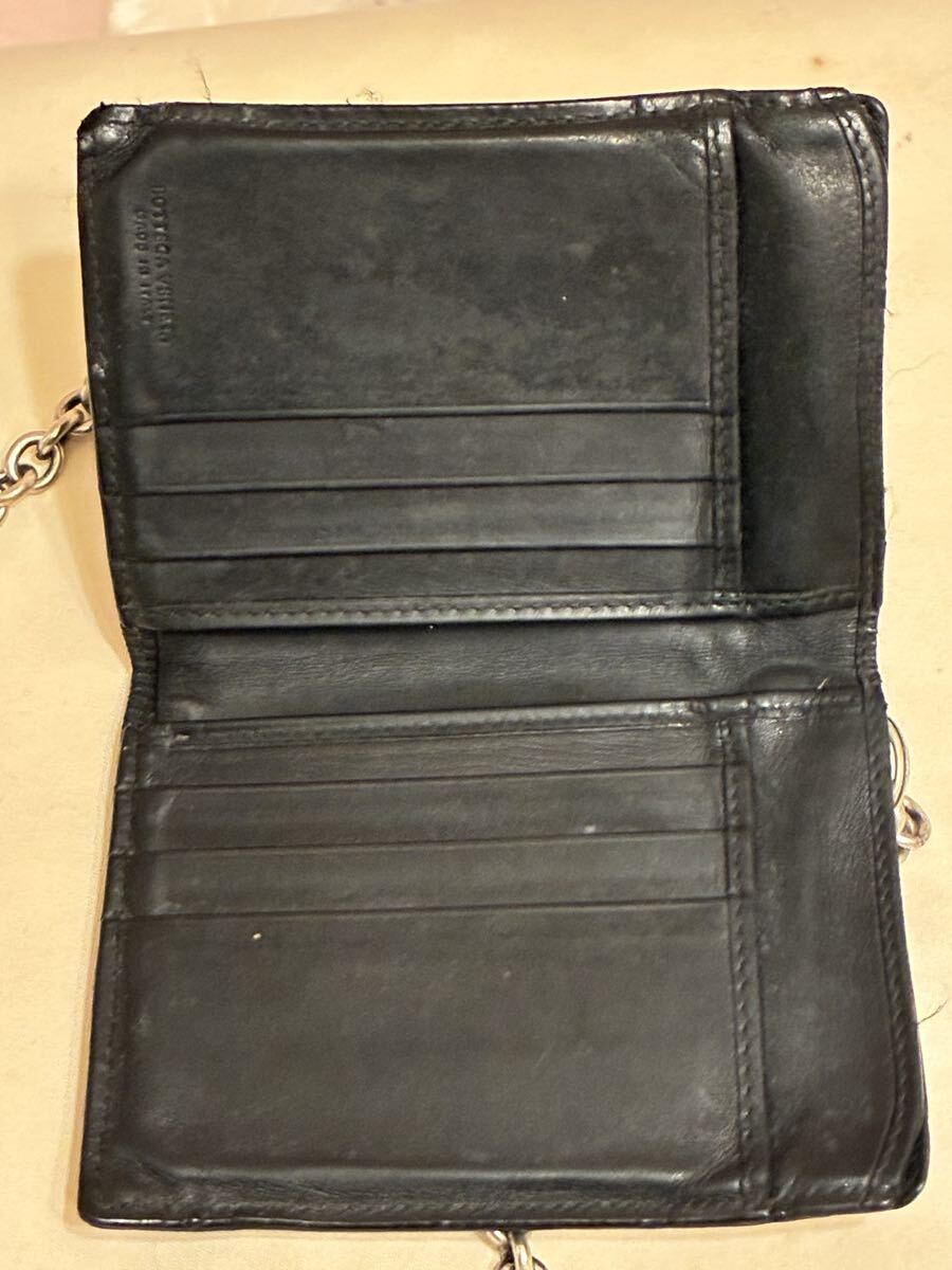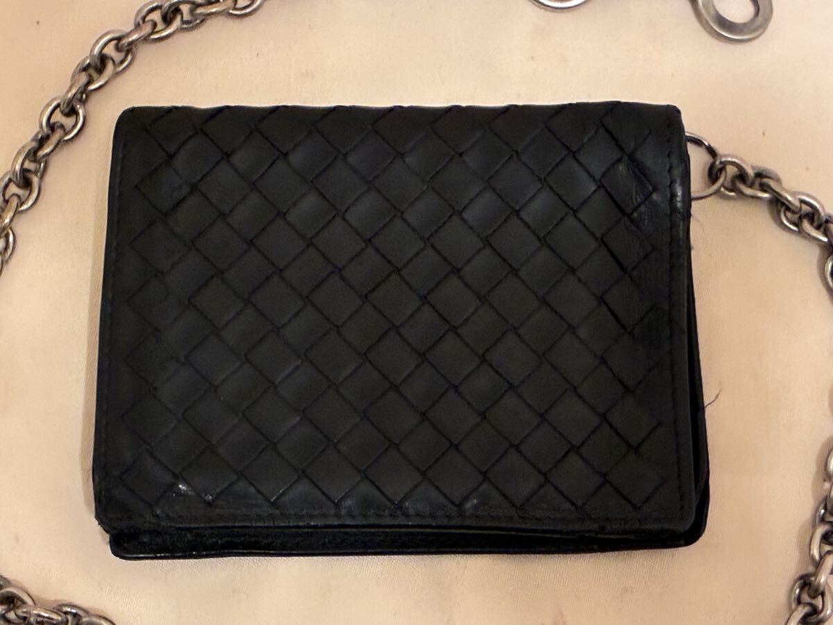 ボッテガヴェネタ Bottega Veneta 革製 イントレチャート チェーン付きウォレット ブラック 中古品 送料込み