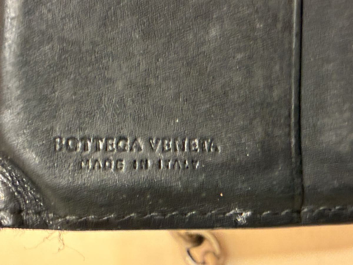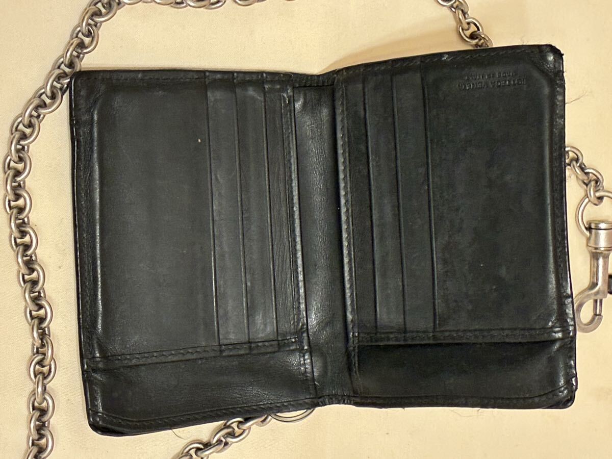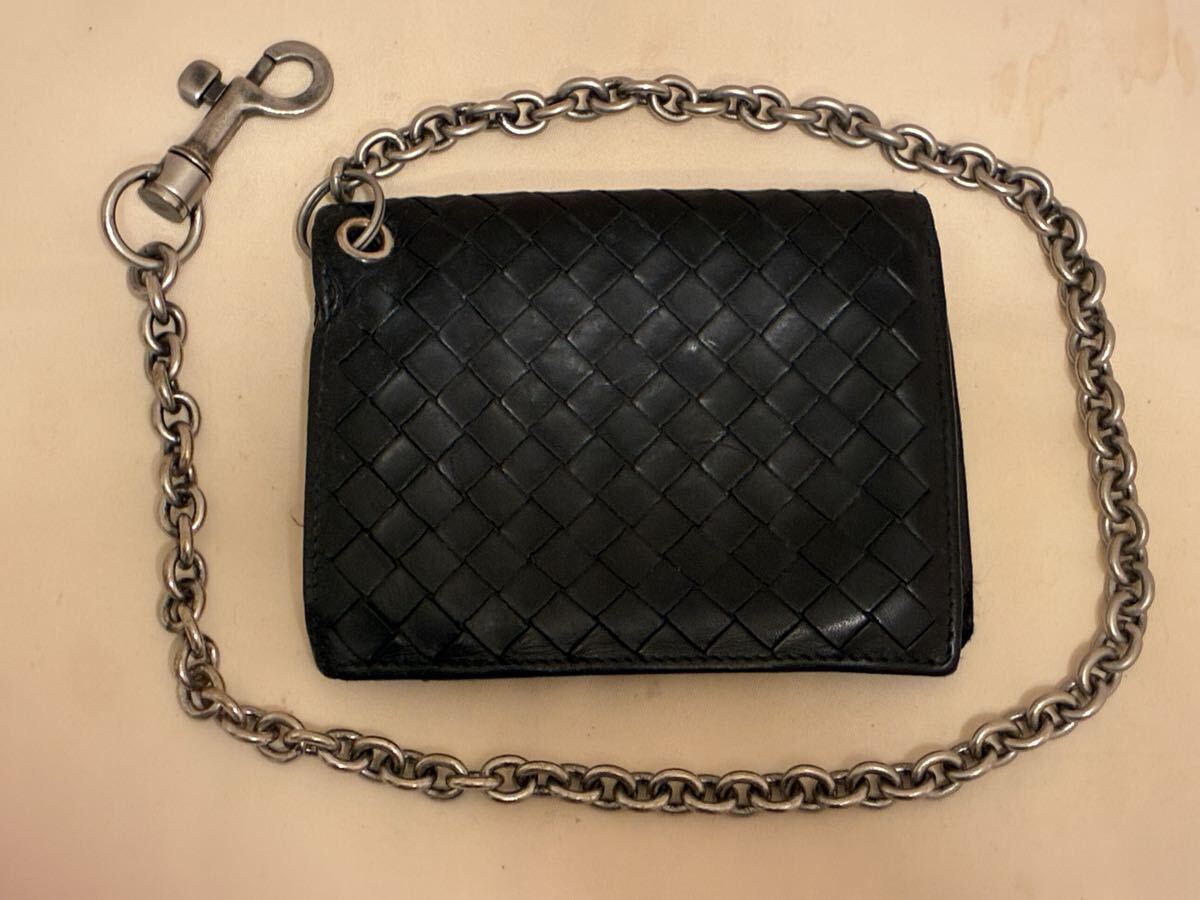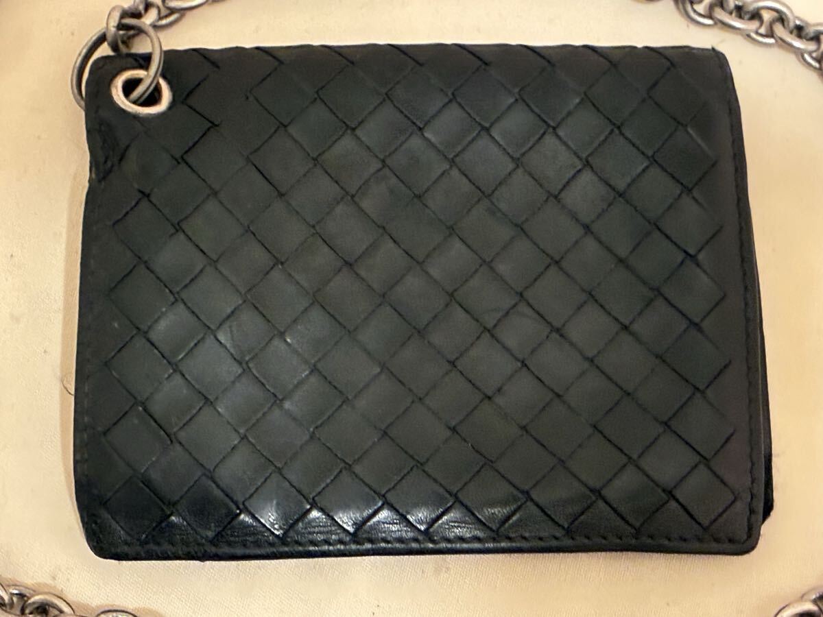 ボッテガヴェネタ Bottega Veneta 革製 イントレチャート チェーン付きウォレット ブラック 中古品 送料込み