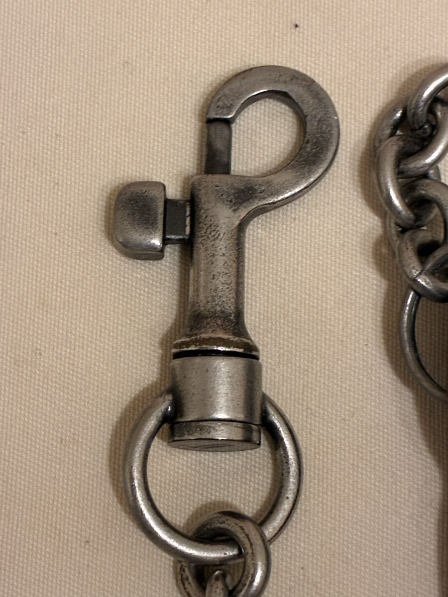 それなりに使用した中古品で、全体的にに使用感があります。角に少し擦れがあります。色はブラック。イントレチャートの綺麗な革の織り込みが素晴らしい。素人採寸ですが、商品のサイズは、12.5x9.7x1.2cm、チェーン 59cmx0.9cm です。