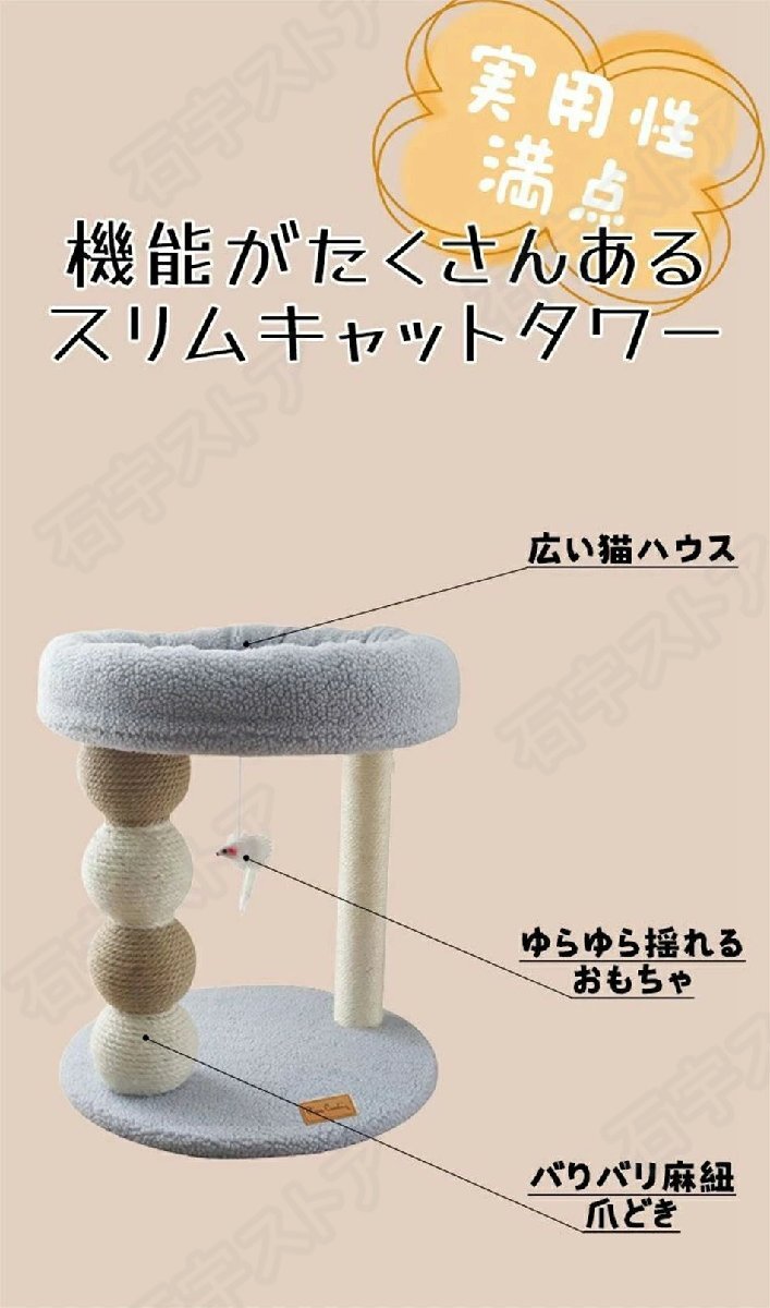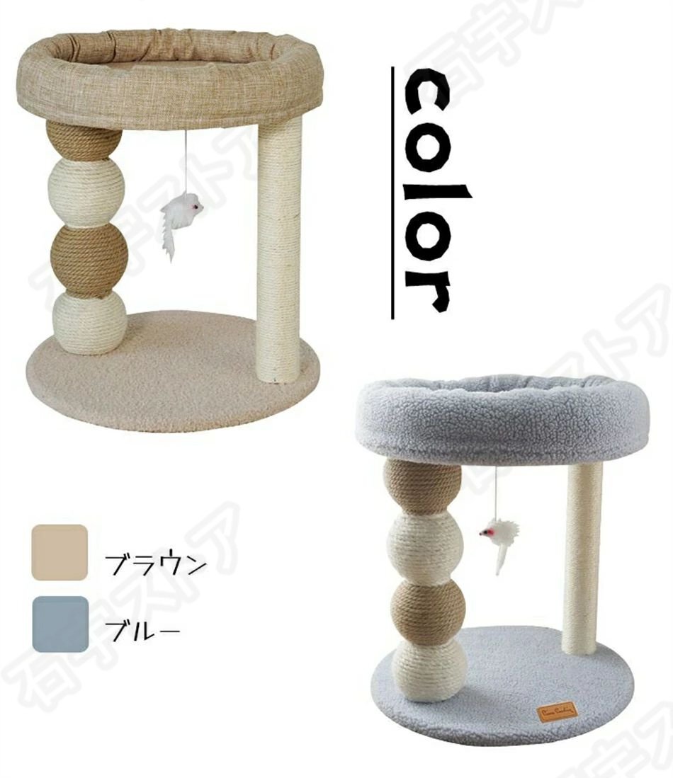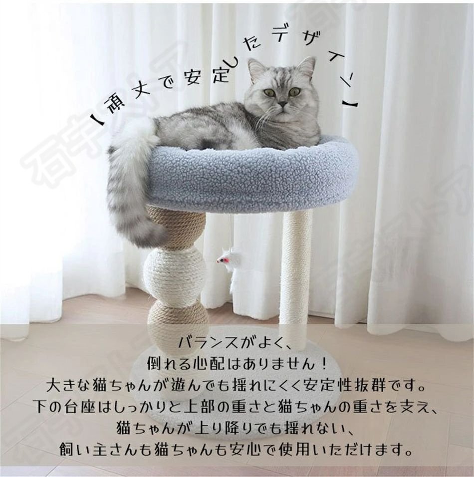 キャットタワー 省スペース 天然麻紐 耐久 組立簡単 支柱 ミニ 猫タワー 昼寝タワー 遊び場 据え置き型 爪とぎポール ブルー shw312.2