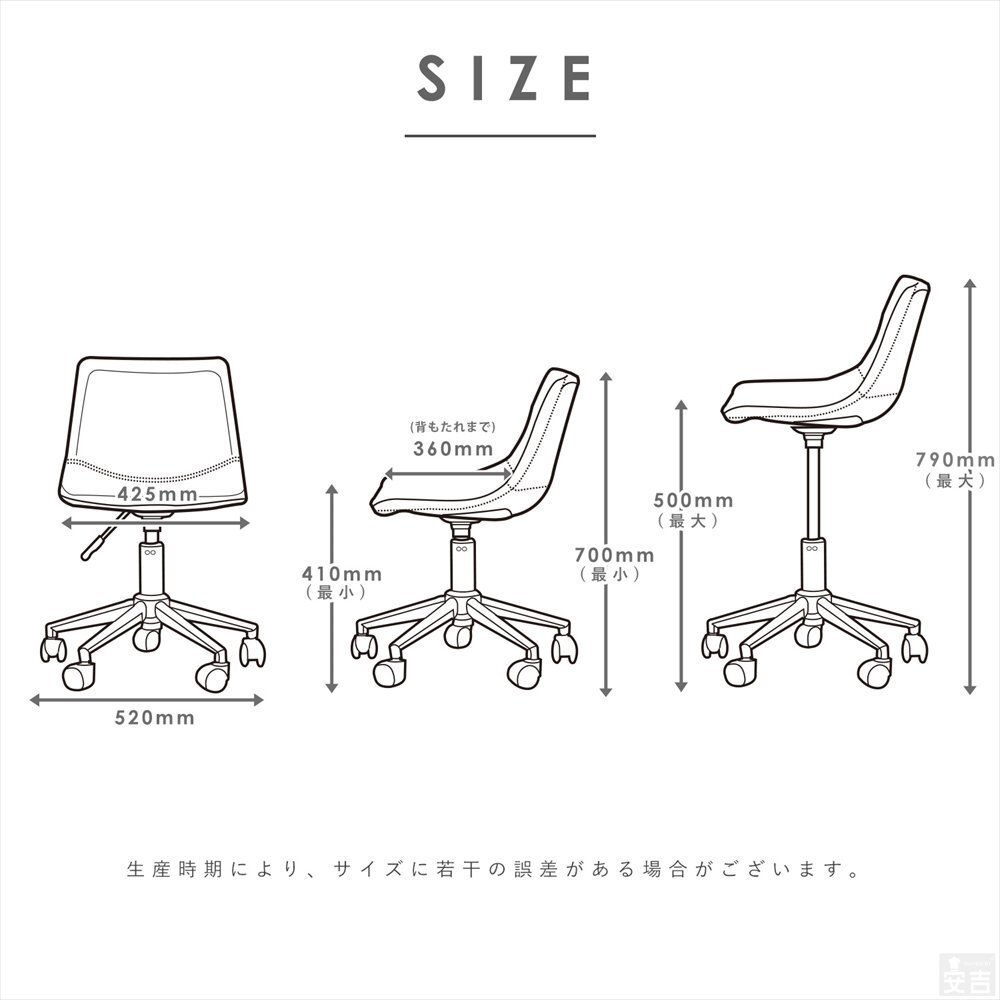 仕様 | 座面360度回転、ガス昇降式 |