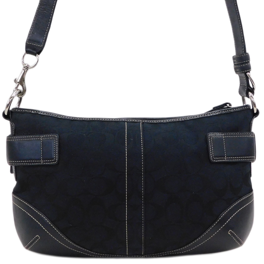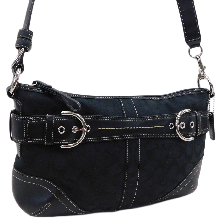 1円■ 美品/コーチ/ショルダーバッグ/7077/ブラック系/キャンバス×レザー/シグネチャー/COACH ■E.Bir.zE-30[中古]