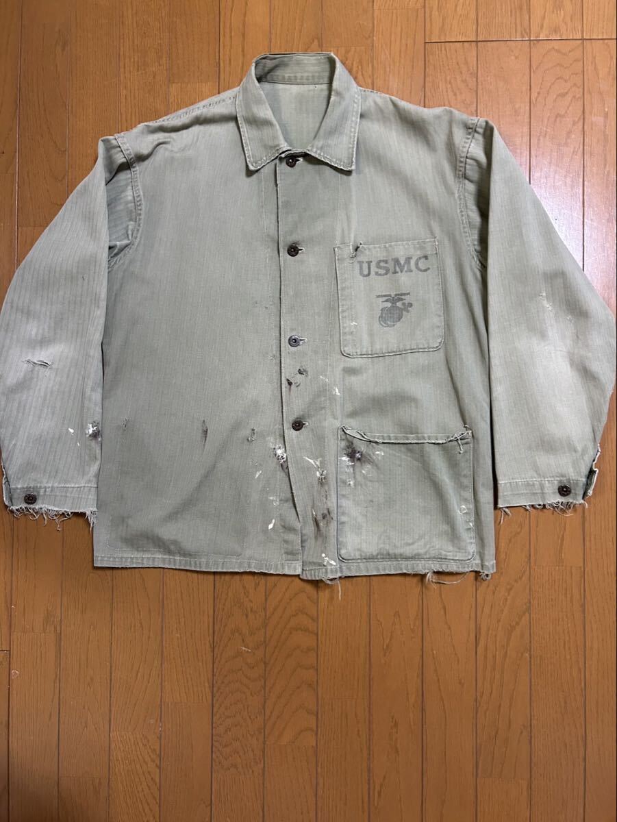 40's ビンテージ USMC P-41 HBT ジャケット WW2 ARMY ヘリンボーン 雰囲気 ダメージ系