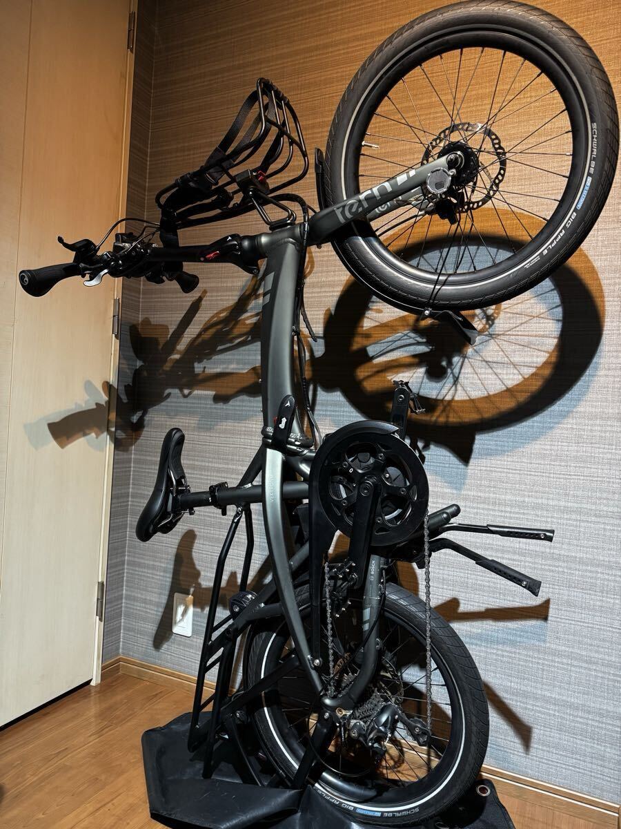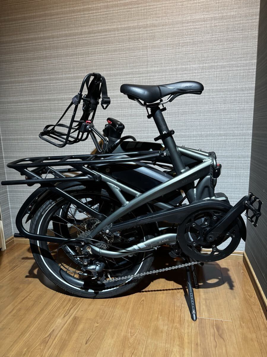 軽量化と乗り心地を良くするため、シートポストはフルカーボン製に、ペダルはペアリング入りのチタン軸の軽量のものに変更しています。その他、フロントキャリアの設置とセンタースタンド化してます。バッテリーが高いですが、総額60万ぐらいかかっています。