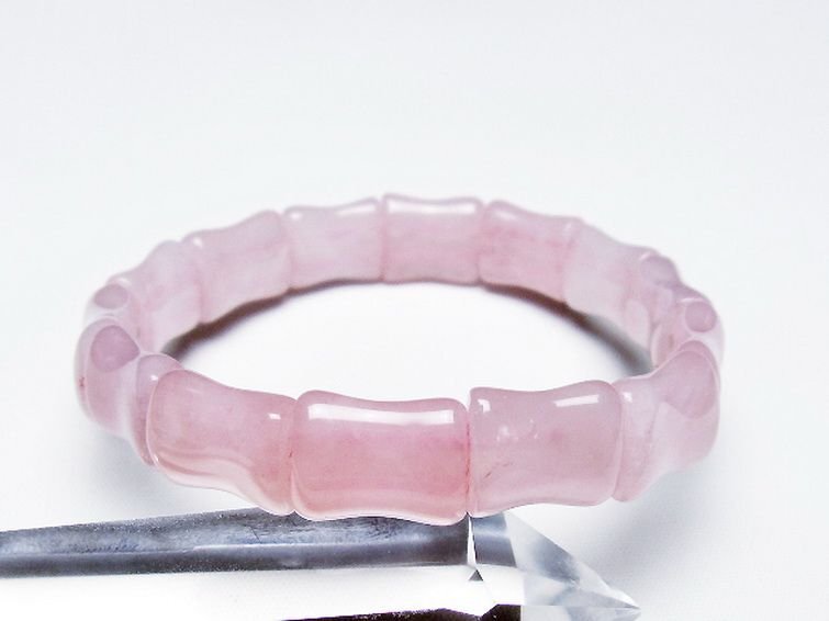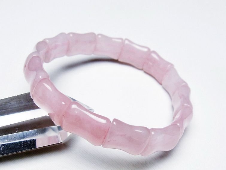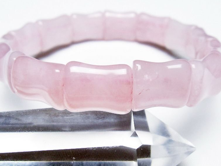 ■商品名: ローズクォーツバングル ■商品ID: T189-3673 ■商品重量:約 27.3g ■商品サイズ: 高約:15mm 横約:12mm 厚約:7mm 内径円周約:173mm(±5mm) 【ローズクォーツ(紅石英)】 ローズクォーツは柔らかい優しいピンクの水晶です。アルミニウムや酸化チタンなどの結晶を含むためにピンク色になると考えられています。これらの微細な結晶が分散しているため、石全体の透明度が低く、濁っていたりひびがあります。高品質の透き通ったものや、スター効果が確認できるものは珍重されています。 この石は愛や優しさ、内面美を象徴する石です。ローズクォーツと言うと「恋愛運アップ!」といったイメージが一般的ではないでしょうか。 ローズクォーツは持ち主の内面の美を高め、女性の幸せや喜び、愛を呼び起こしてくれるとされています。また過去の傷ついた経験から、ついネガティブ思考になったり自分に対してマイナス思考になったりするような、負の感情を優しさで包み込み癒し、自分を許し愛せるようになるそうです。 この石は目当ての異性を連れてくるというよりは、内面的に美しくなり自分を良い意味で大切にする自己愛を知ることにより他者から愛されるという効果のようです。例えば自分なんか大嫌い、自分なんかどうせ、と思っている時に、他人から愛されるでしょうか。それよりも自分を認めて受け入れ、愛していると内面が輝いて魅力が溢れます。その魅力により周囲の人から愛され、他人から愛されることにより一層他人を愛せるようになるという、愛を呼び込む循環を造ってくれるそうです。 そういった意味で、実は恋愛運アップというよりはもっと定義の広い愛情運アップの効果があるとされています。 こういった広い意味での愛を得ることができるとされ、人に対して思いやりを持ち許せるようになることから、人間関係の改善や、苦手だけれどどうしても付き合わなければならない人がいるといった場合でも活躍してくれることでしょう。 【水晶(石英、クリスタルクォーツ)】 水晶とは石英を指しますが、一般的に無色透明のものをクリアクォーツやロッククリスタルと呼んでいます。 水のように美しく透き通ったものが良いと思われがちですが、内部にヒビや他の鉱物などのインクルージョン(内包物)が入っているものがあり、それが天然物の証。また、インクルージョンによって様々な種類に分類され、それぞれ違った印象を与えてくれます。 古くから呪い事に使われてきた水晶に秘められたパワーはとても万能で、あらゆる場面に対応するといわれています。特に邪気を祓う力が強いため、人間関係を円滑にしたり、心身をクリアな状態にしたい場合に最適です。また空間を浄化する作用もあるとされ、インテリアとしても高い人気を誇っています。 石自体に強い自浄作用があり、他のパワーストーンが吸収した負のエネルギーを浄化するといわれています。更にアクセサリーとして他の石と組み合わせる場合、それぞれの石の個性を引き出しバランスを取ってくれる効果があるそうなので、ぜひとも組み込んでおきたいですね。 パワーストーン入門に最適な水晶ですが、愛好家にとってはかなり奥が深く最後に行き着くのもこの石なんだそうです。何もかもを見透かすような透明な水晶には、本当に神秘的なパワーが宿っているのかもしれません。 |