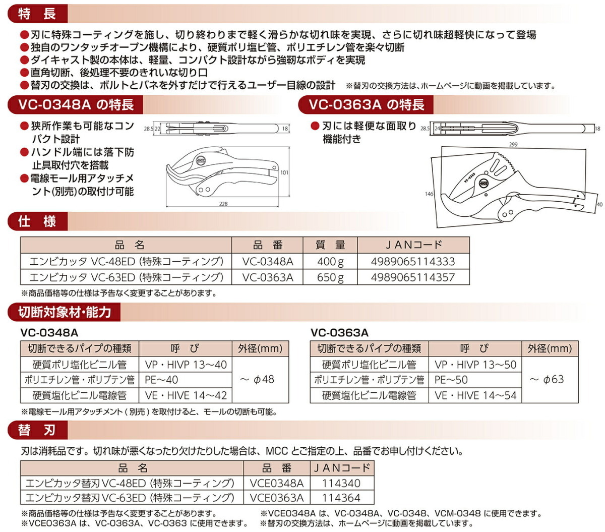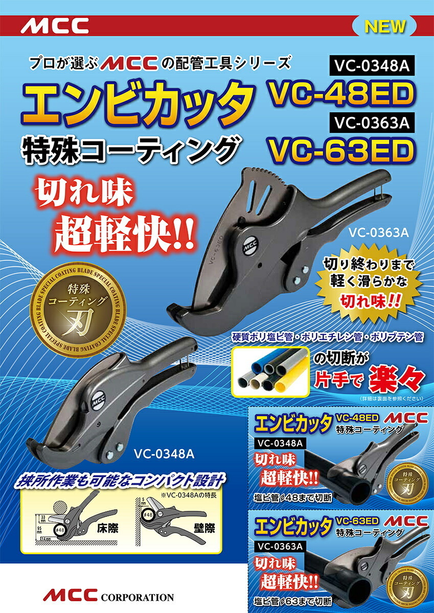 【新製品】【オススメ】〈MCC〉エンビカッター 特殊コーティング VC-0363A
