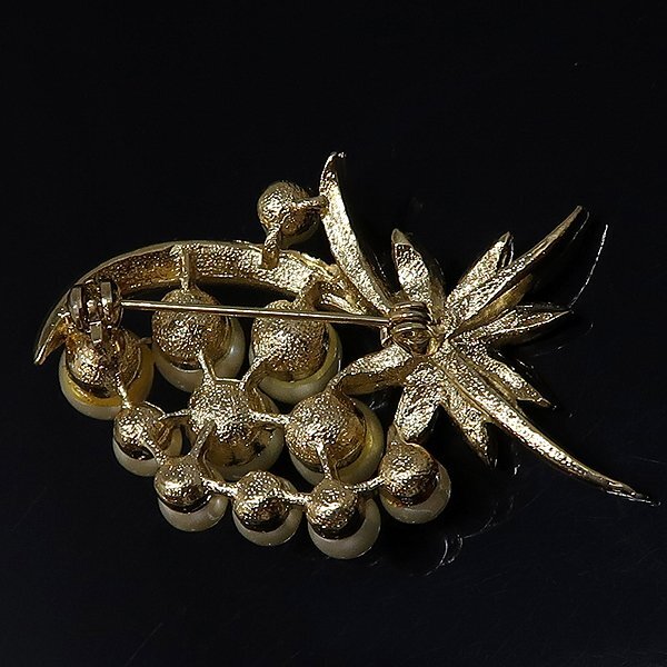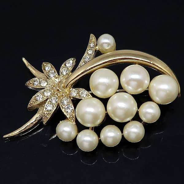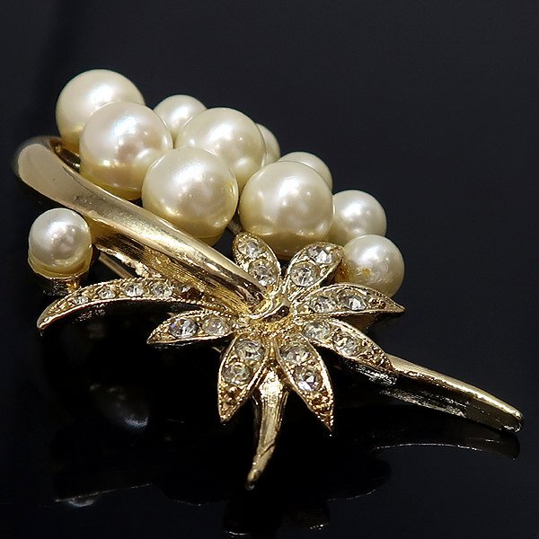DKG★送料無料 BVA571★ フェイクパール ラインストーン ゴールド カラー ブローチ