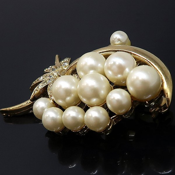 人工真珠 真珠 ラインストーン ブローチ