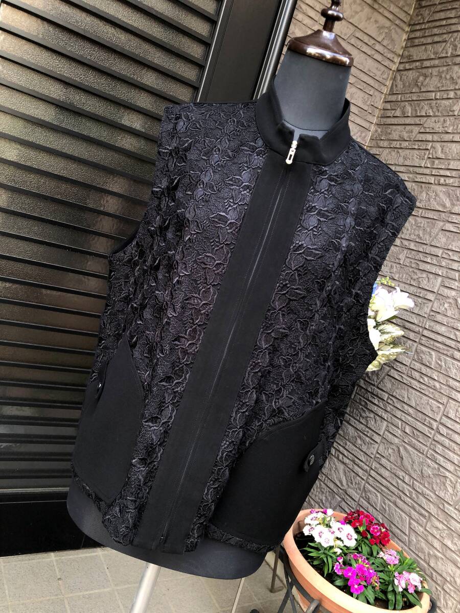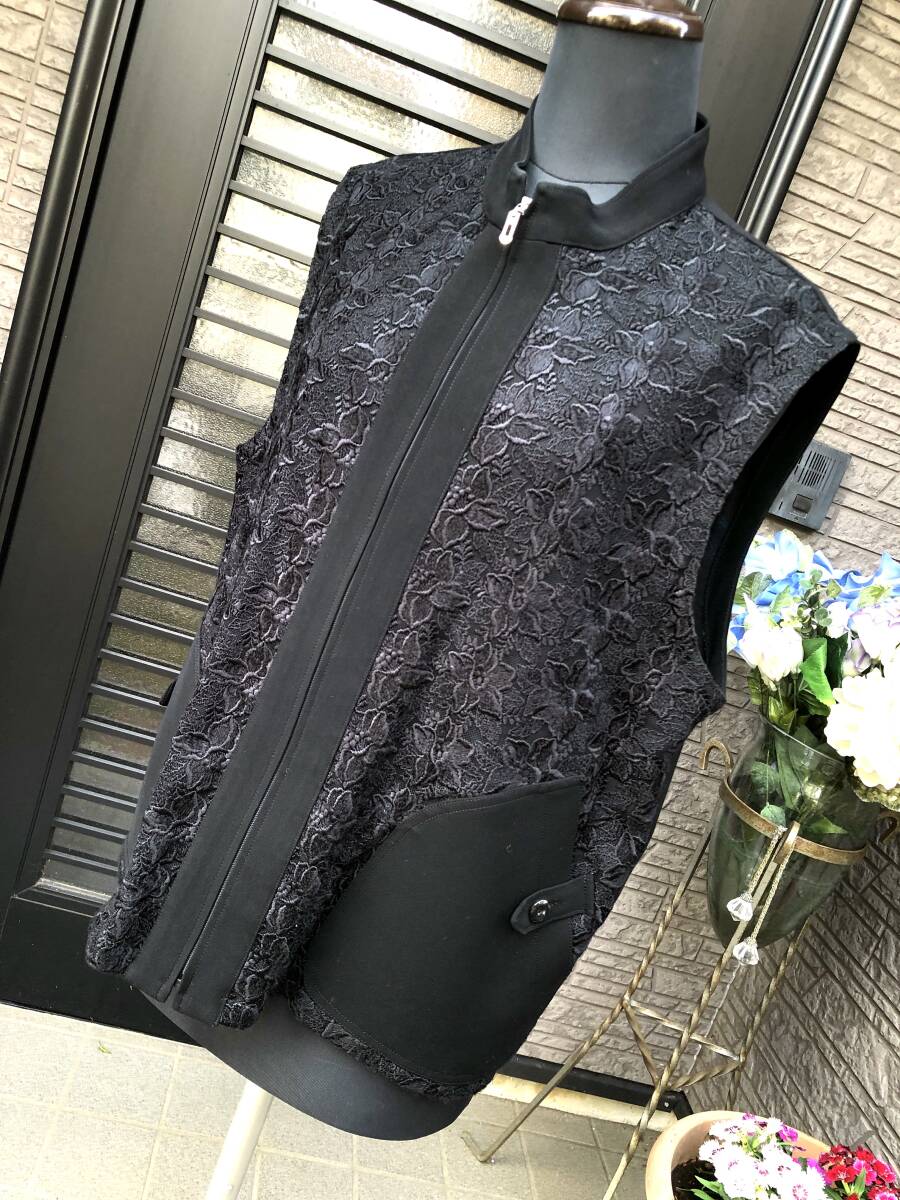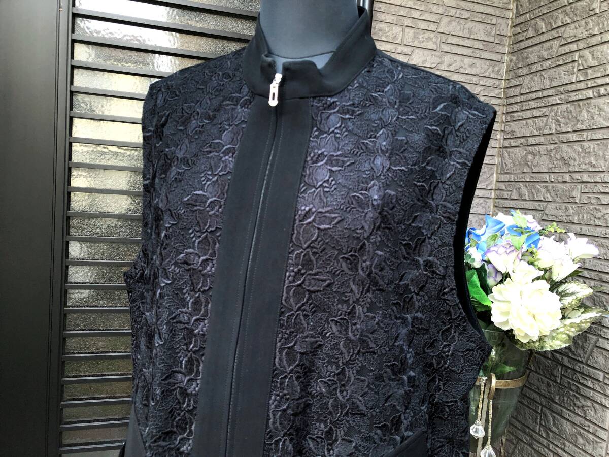 ブラック レース付き ジップアップ ミセスのベスト 美品 LL~ 送料230円