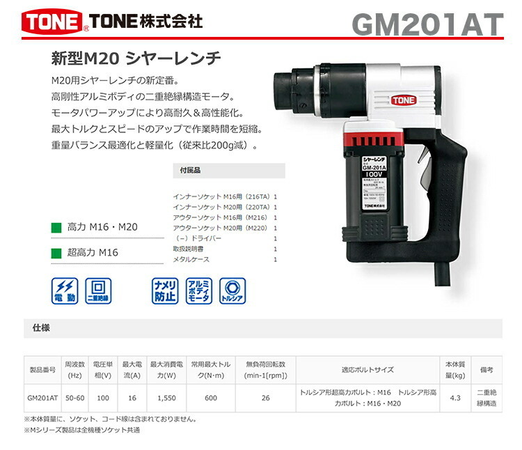 TONE(前田金属工業)GM201AT 適用ボルト:M16・M20