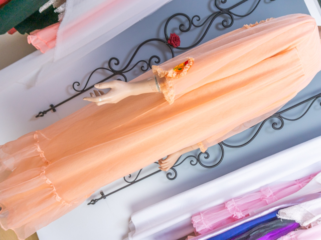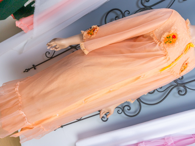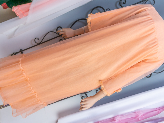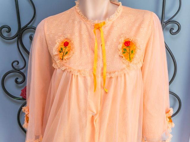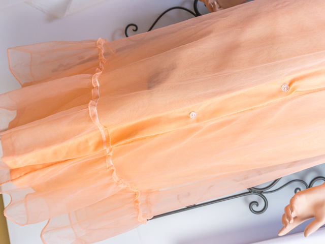 2938*【送料無料】*ネグリジェ*アンリアリイ*日本製*ロング*ふわふわ*シフォン*オレンジ*レース♪正面観音開き*USED♪ | |||