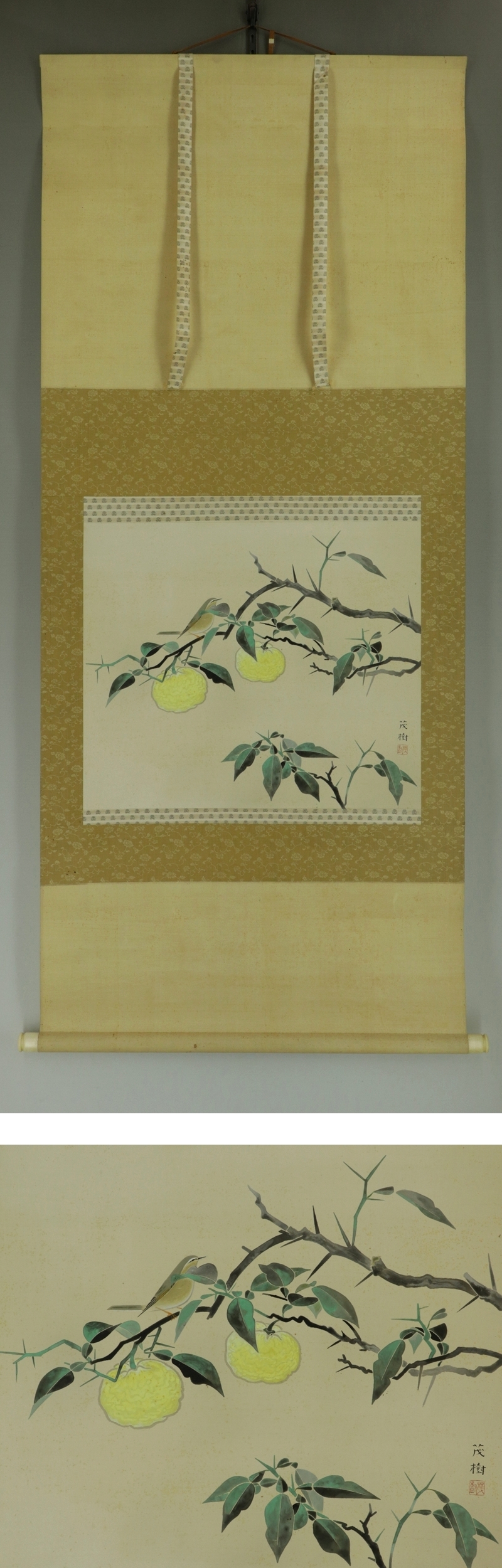 | №111139【模写】黒光茂樹【柚子】◆絹本◆合箱◆掛軸 | |