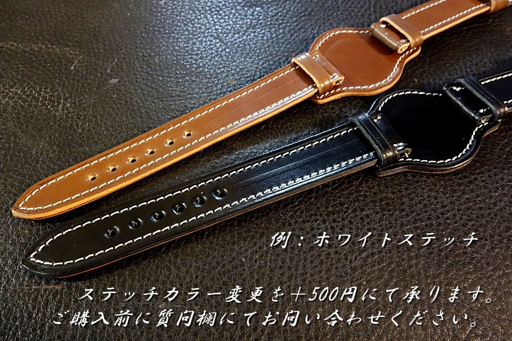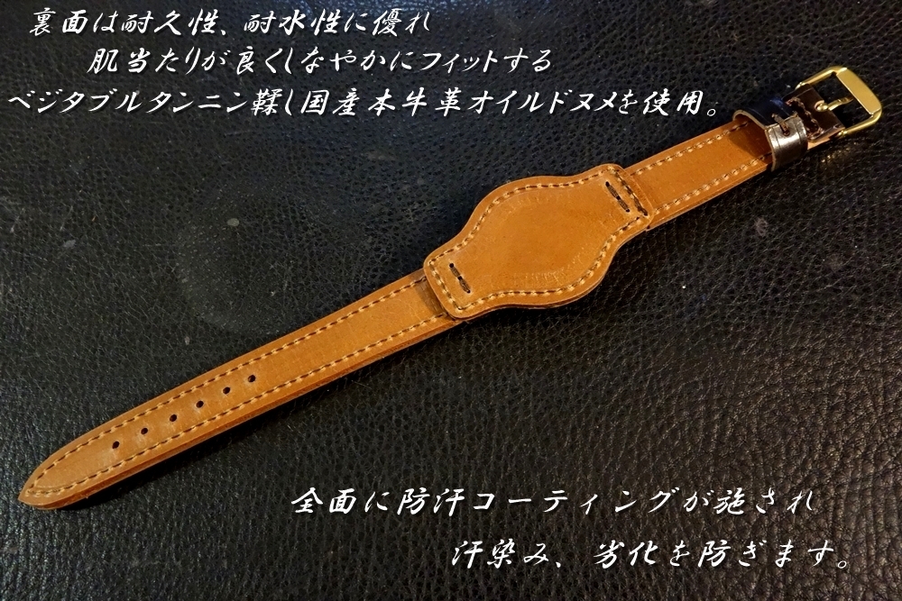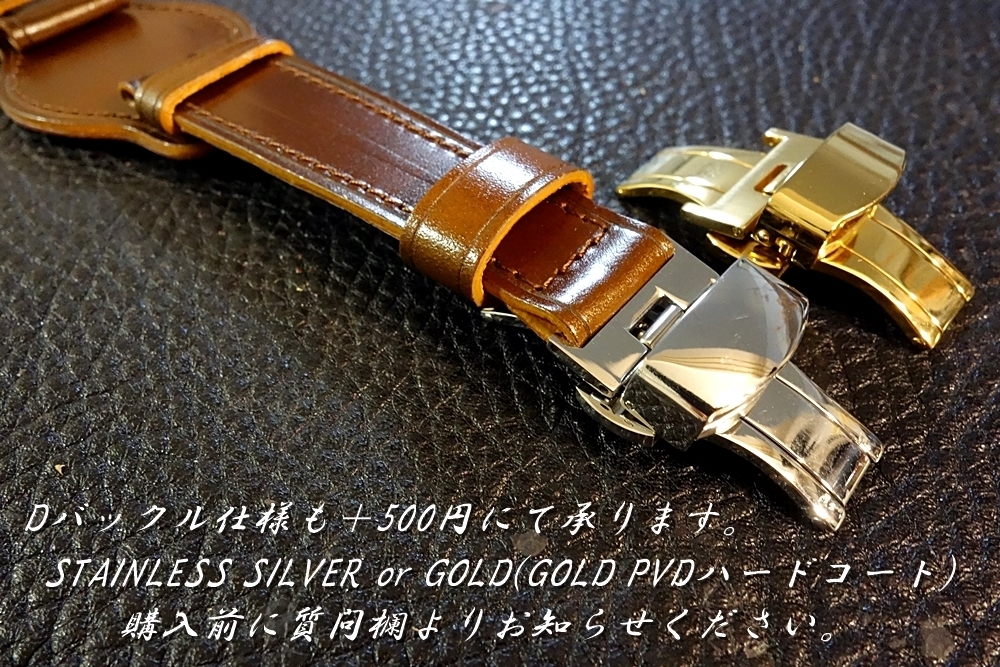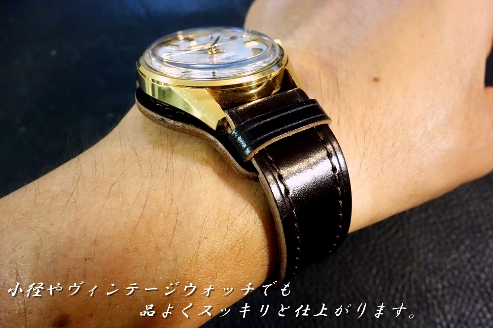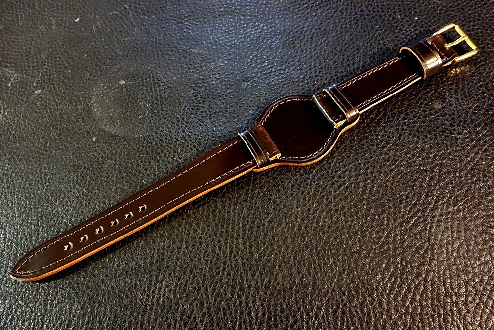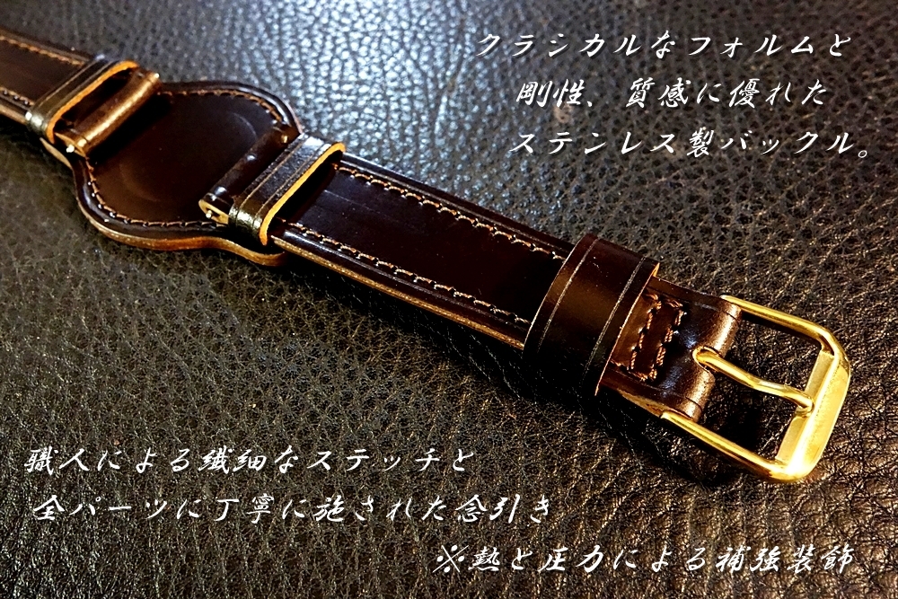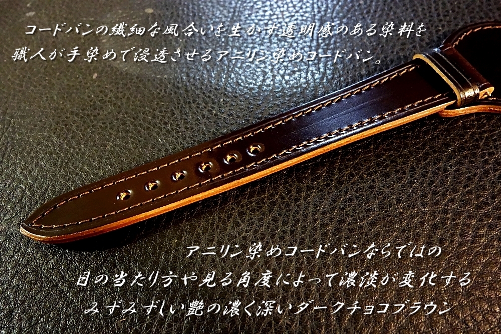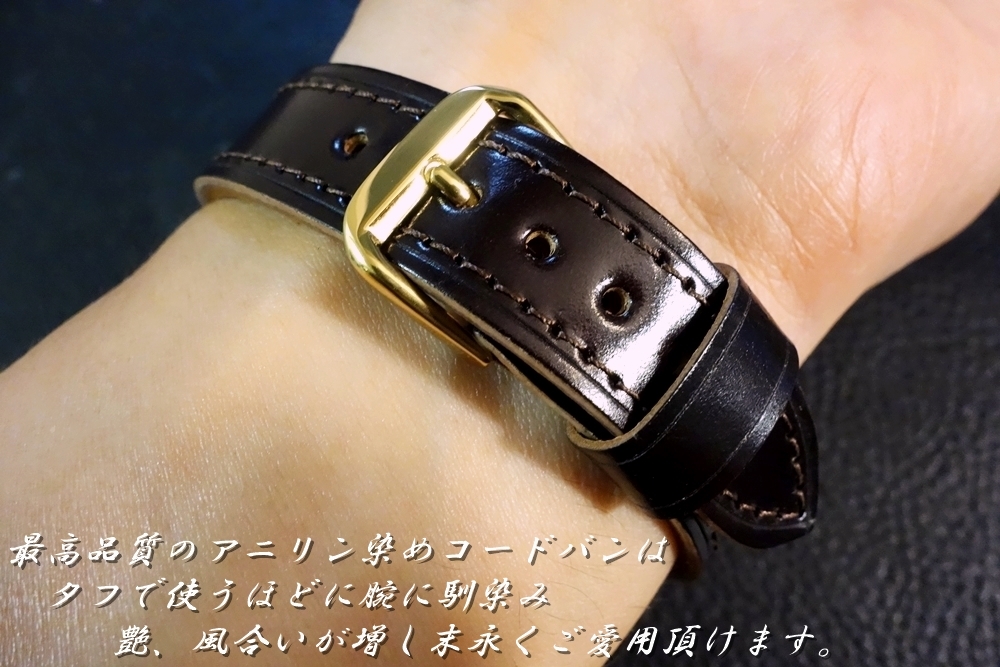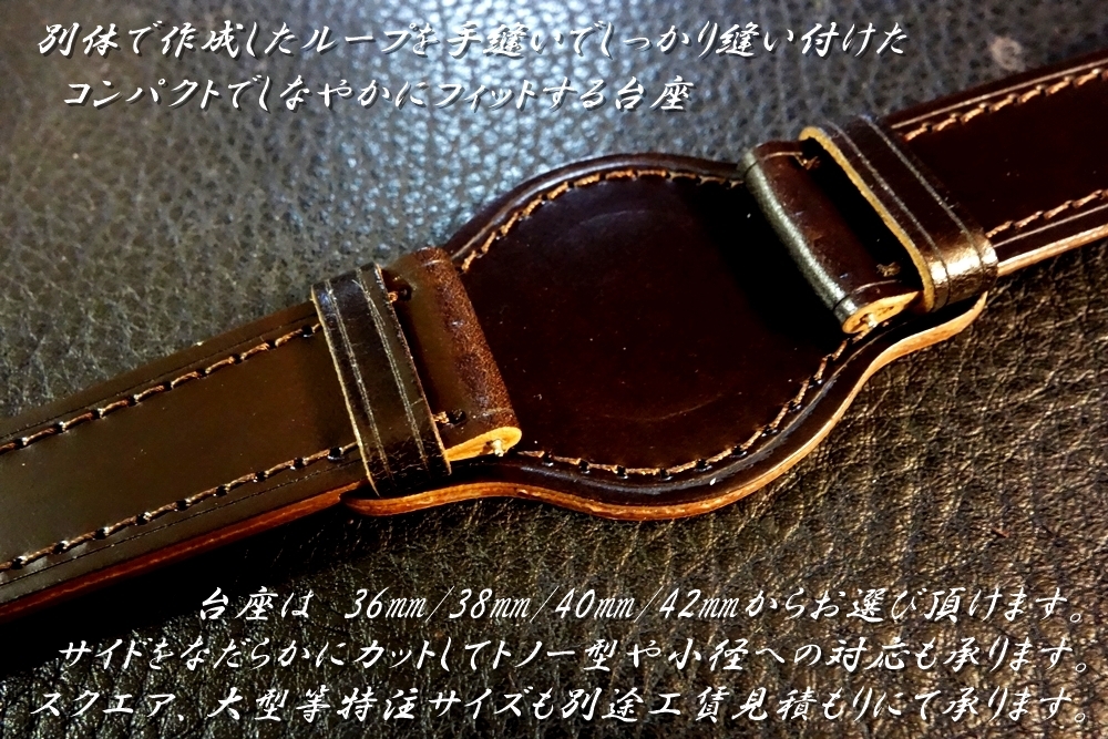◆台座付VINTAGE BELT◆高品質国産アニリン染めコードバン ダークチョコ カスタムオーダー(ラグ幅/台座サイズ/バックルカラー) 日本製 受注生産(納期10日前後) 腕時計ベルト |