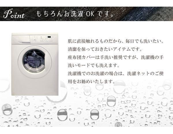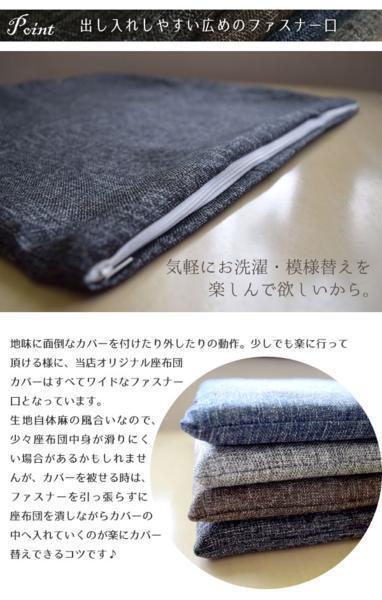 〇仕様 | ・麻のようなさっくりとした素材に、あえてムラのある染糸を使用することで、無地ながら表情豊かな座布団カバーです。 |