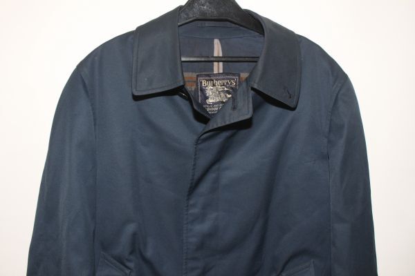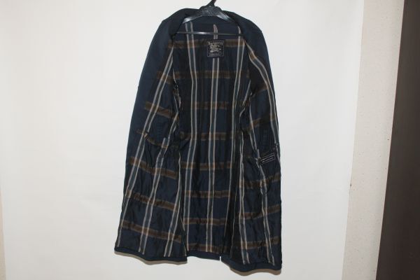 4091*S:バーバリーズ、紺、綿ポリ、ステンカラーコート、良品