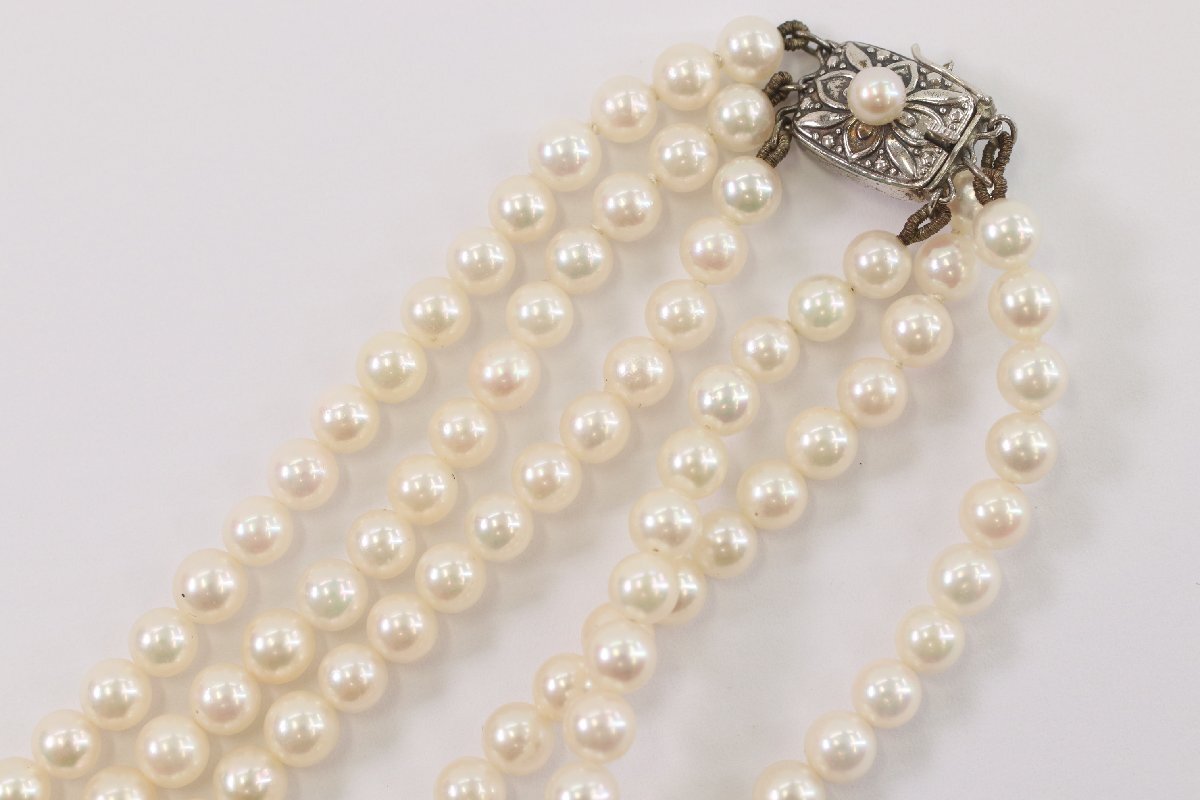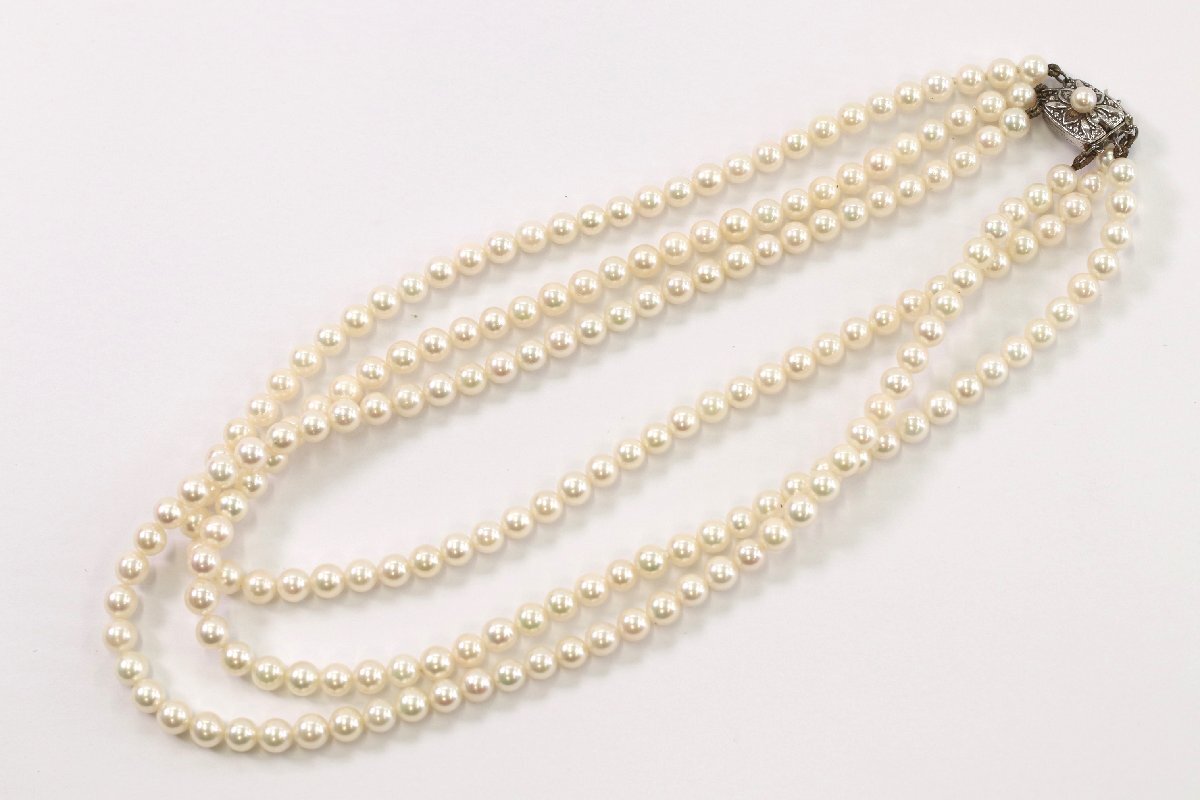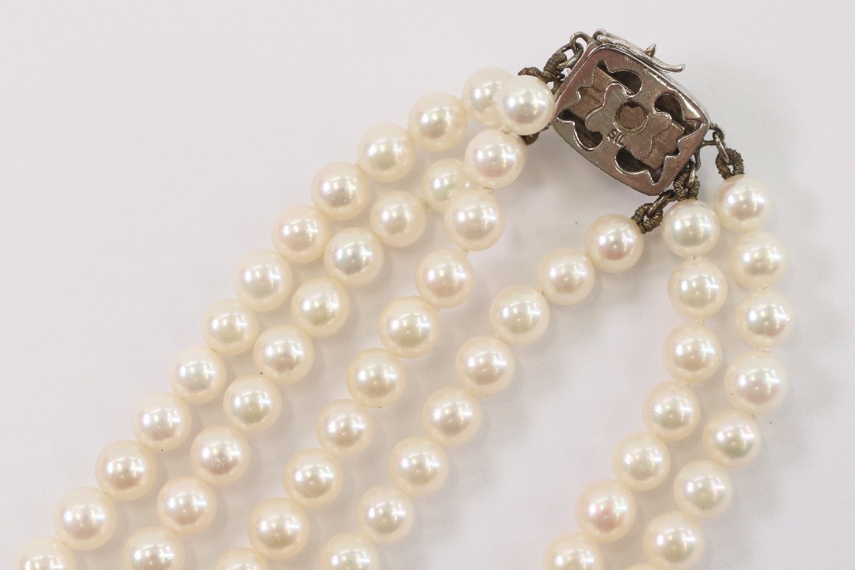 本真珠 パール 留め具 シルバー 約5.0-5.4mm珠 3連 チョーカー ネックレス レディース アクセサリー 2578-K | |