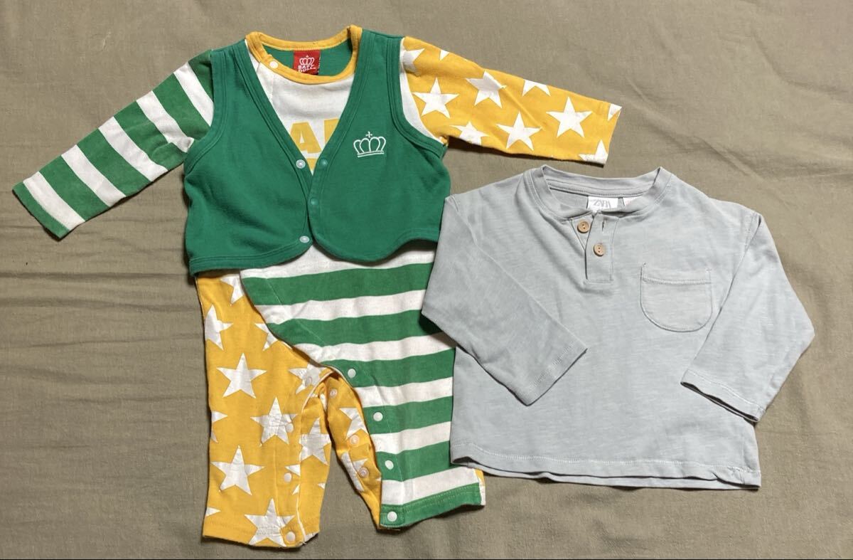 ベビードールは目立つダメージは見当たりませんが、毛玉や使用感があり、よく動く太ももあたりは特に星プリントの割れがあります。ZARAはよく見ればシミっぽいのがあります。画像をご覧になって、細かい事が気になる方や神経質な方はご遠慮ください。