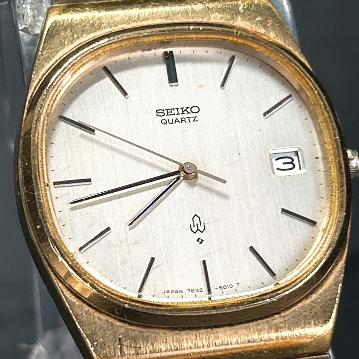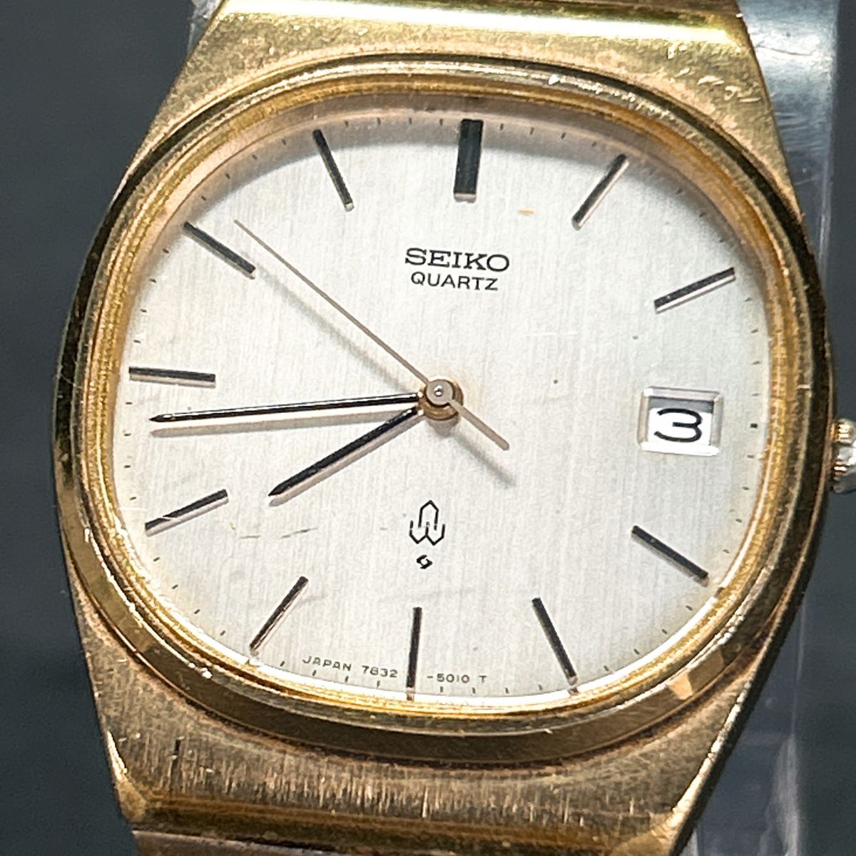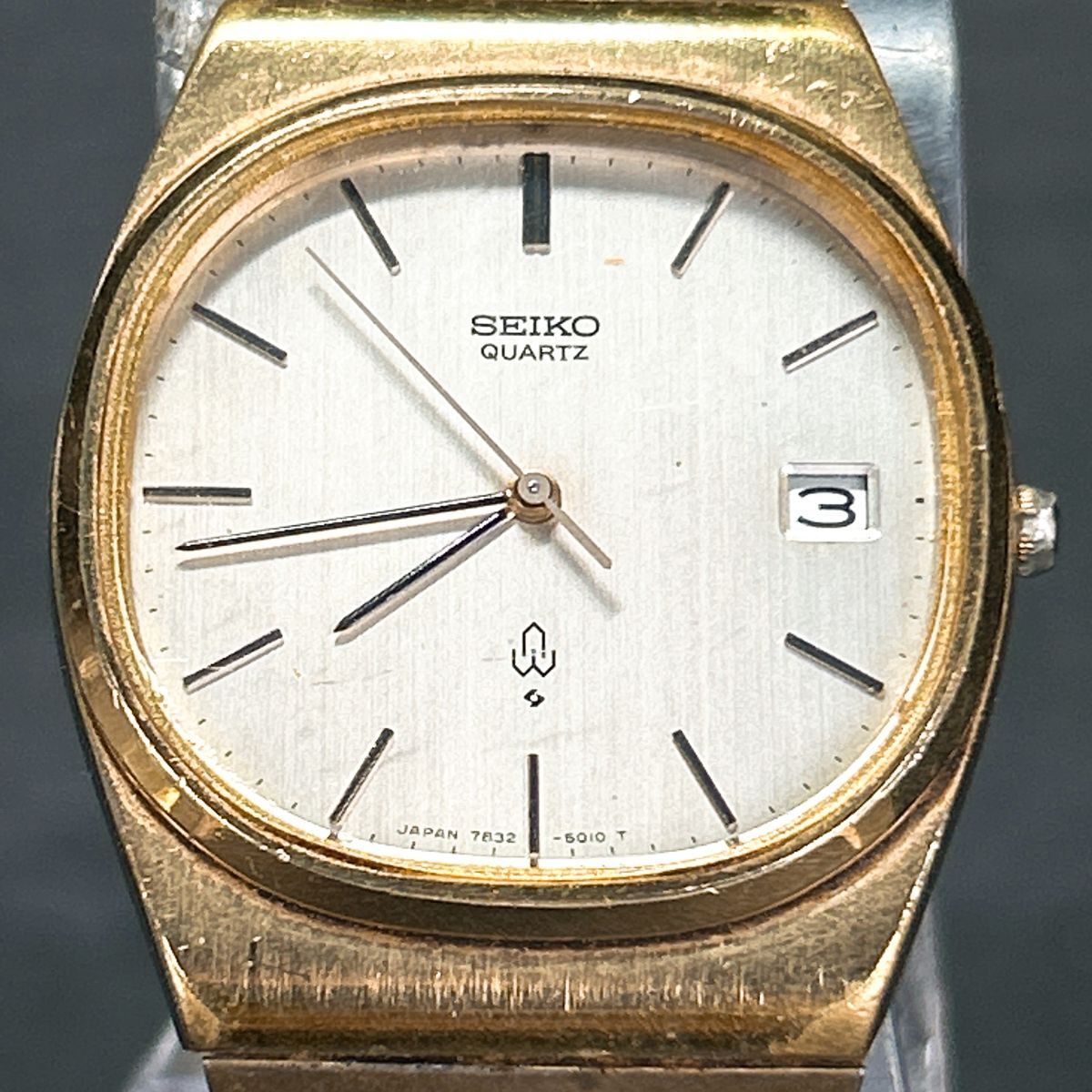 1970年代製 SEIKO セイコー 7832-5010 腕時計 クオーツ アナログ ゴールド文字盤 ヴィンテージ 諏訪精工舎 新品電池交換済み 動作確認済み