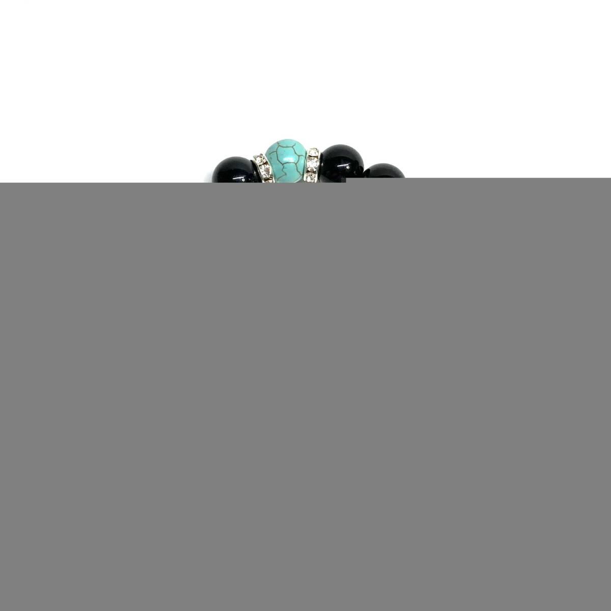 こちらは、モリオンとターコイズを組み合わせたパワーストーンブレスレットです。間にはロンデルを挟み高級感あるデザインに仕上げております。石大きさは腕にも馴染みやすいように10mm玉で内径約18cm(伸可能)です。(サイズ変更の場合は取引ナビにてご連絡をお願いします。) 数に限りがございますので気になる方はお早めにどうぞ。