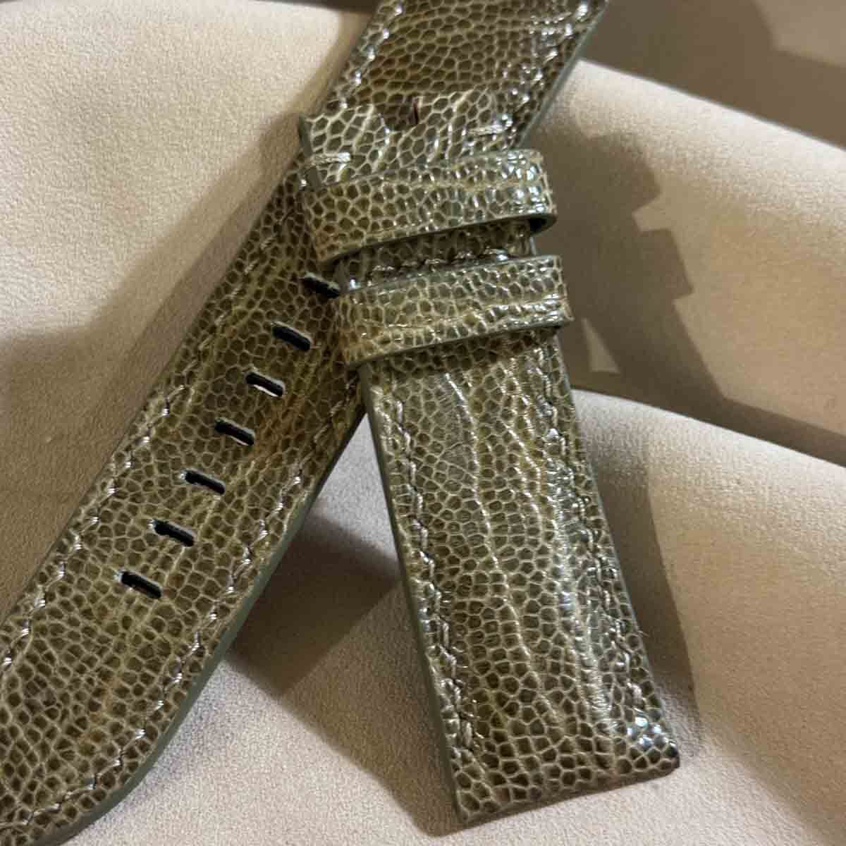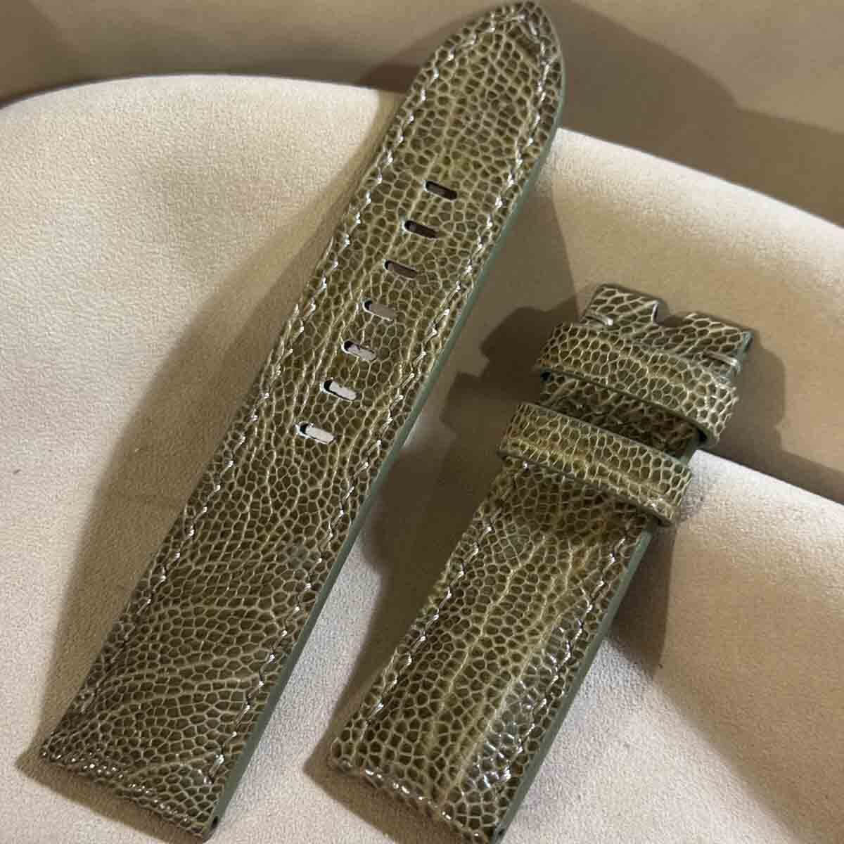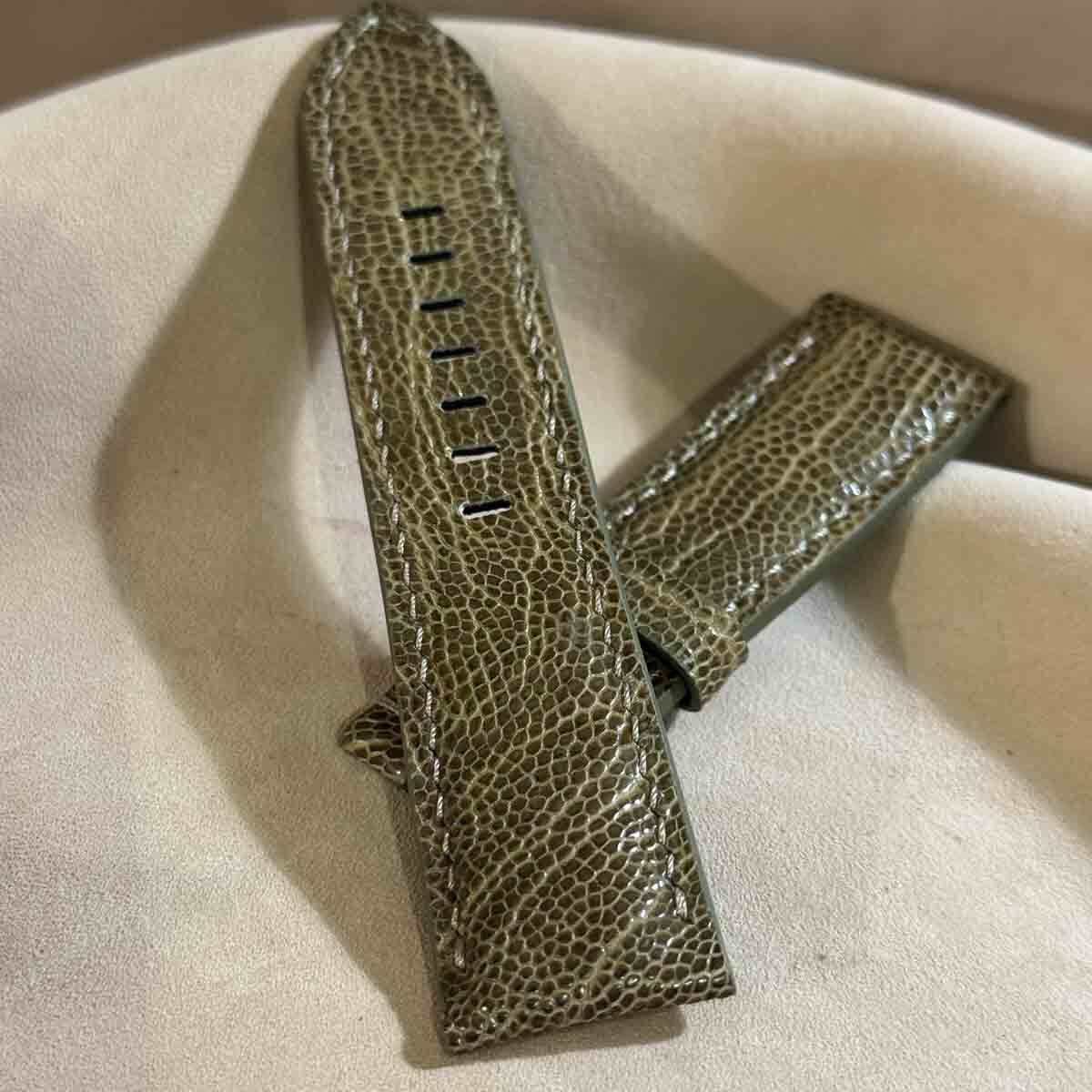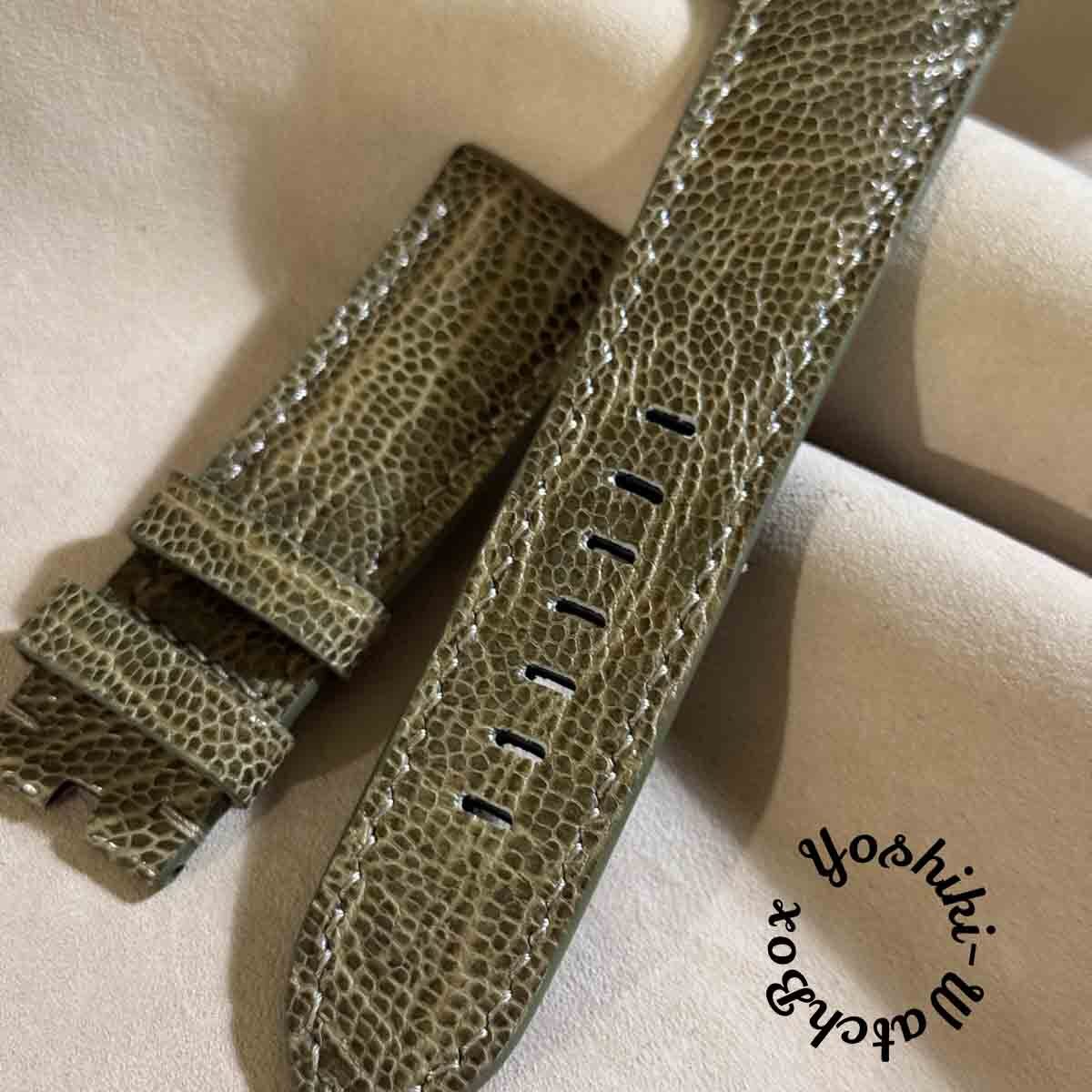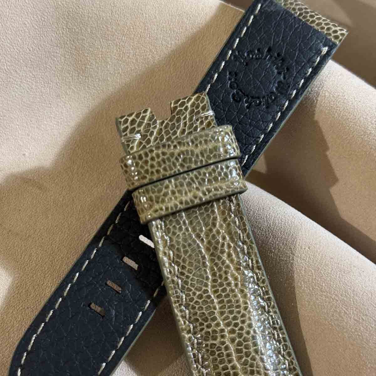 ost-425 オーストリッチレザー 腕時計ベルト モスグリーン (ラグ幅24mm - バックル幅22mm)