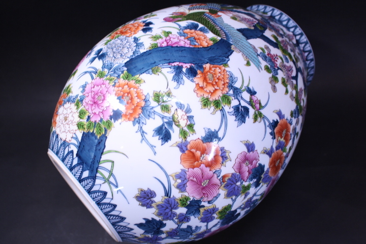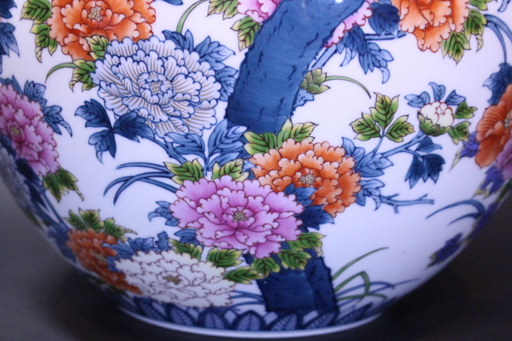f-7211 有田焼 伝統工芸作家 藤井勝雲 染錦 桐鳳凰文 壷 木札 共箱