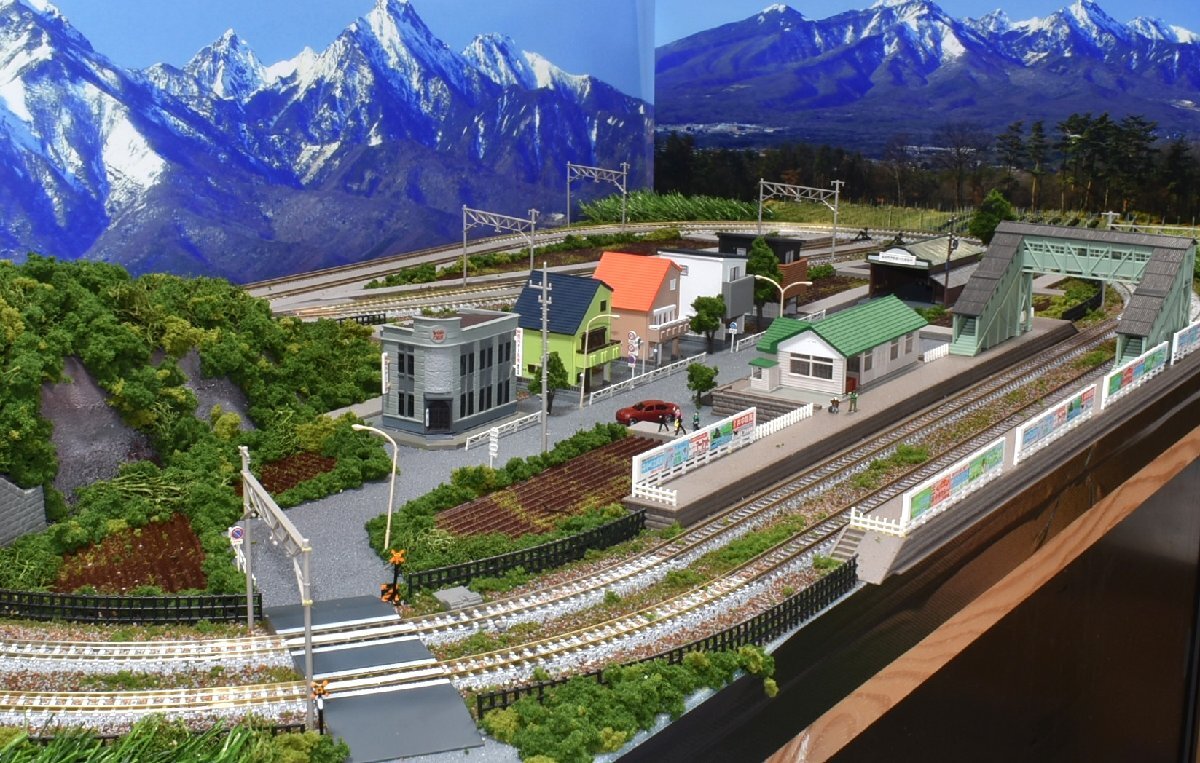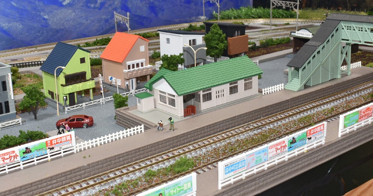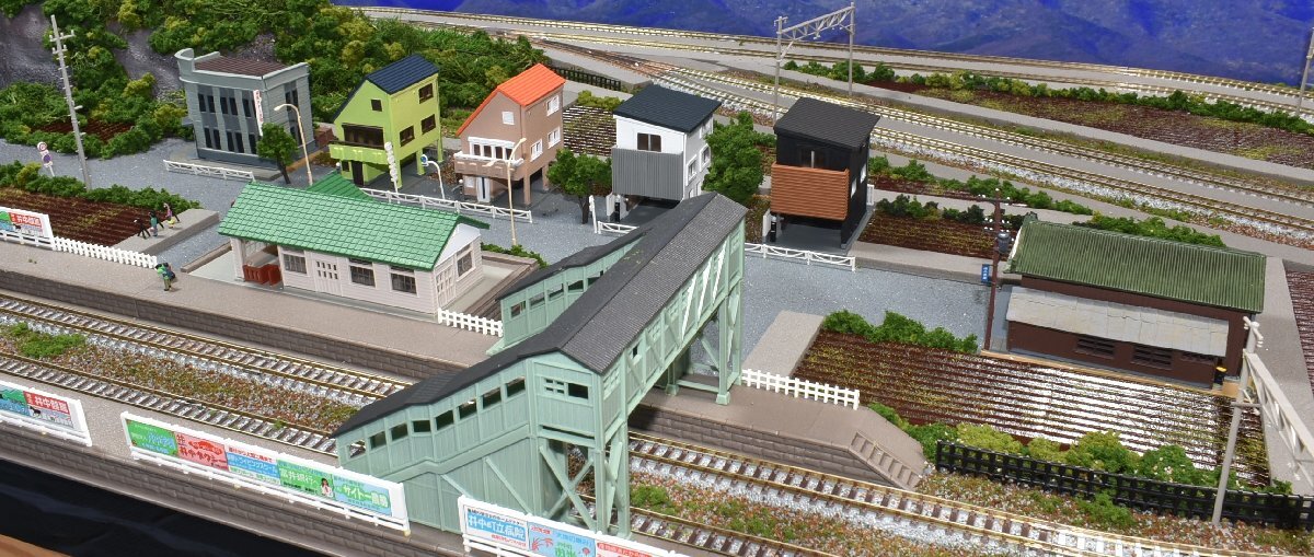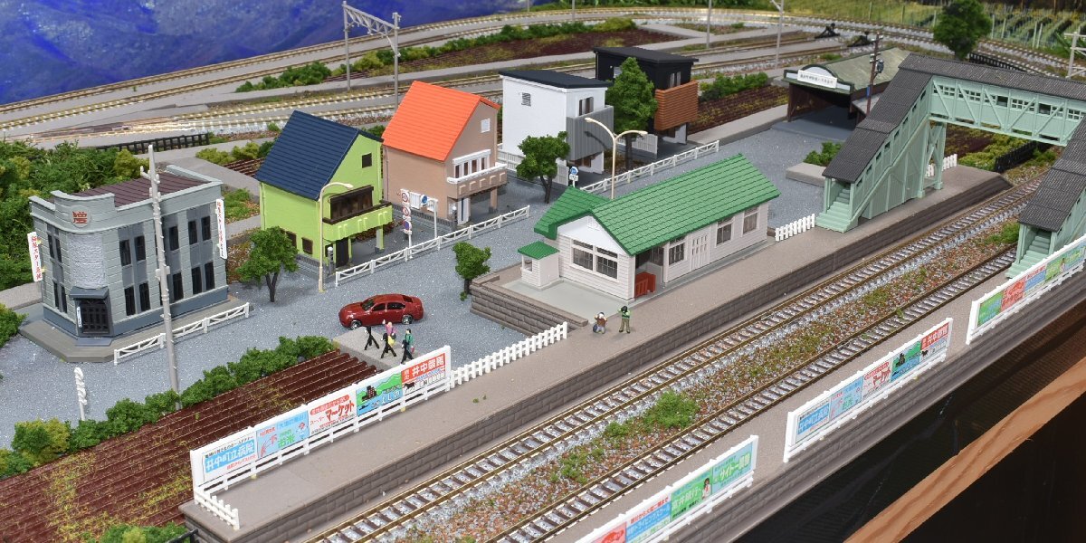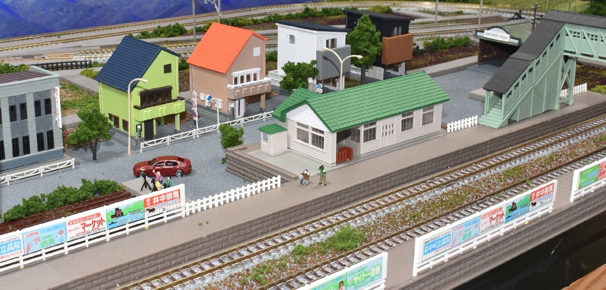 【SAZAN】鉄道ジオラマレイアウト複線※120x60cm 昭和の駅と平成の街並み (2線ヤード)★F