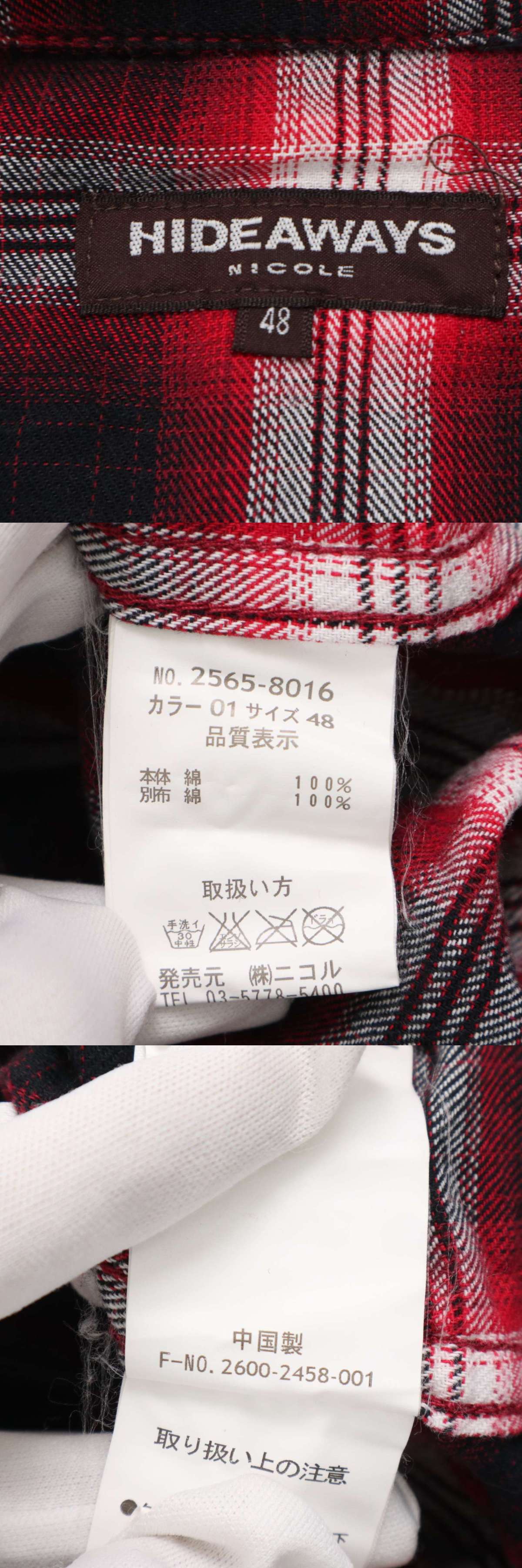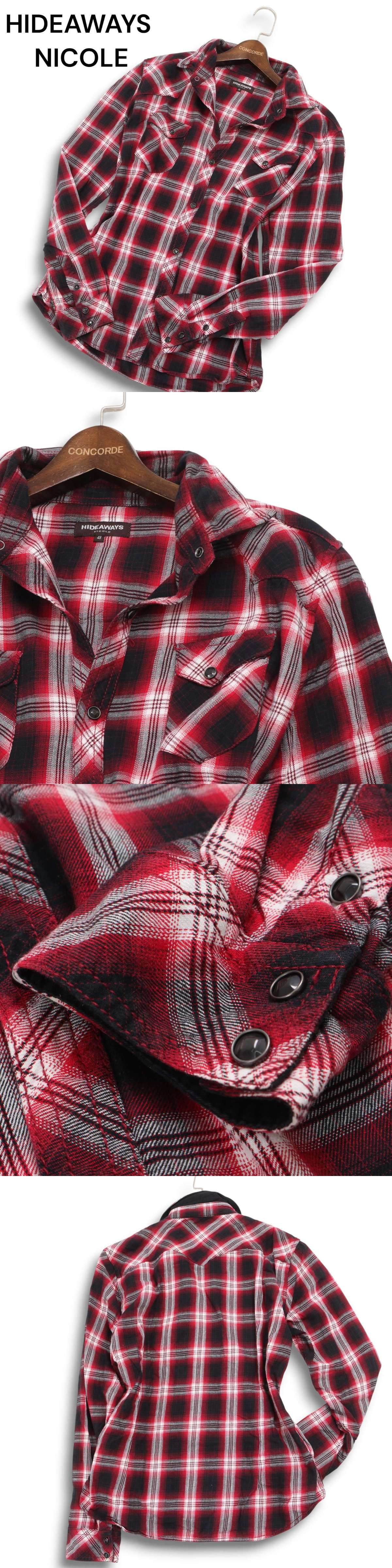 HIDEAWAYS NICOLE ハイダウェイ ニコル 襟ワイヤー★ 長袖 ウエスタン チェック ネル シャツ Sz.48 メンズ