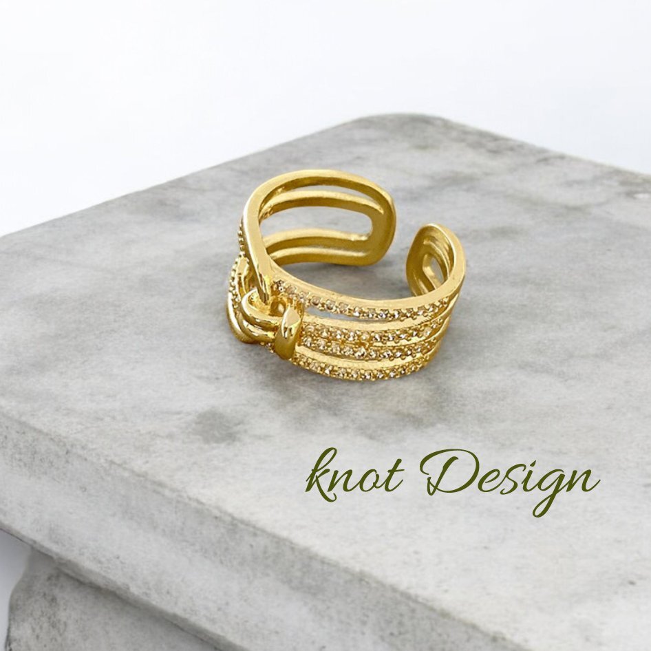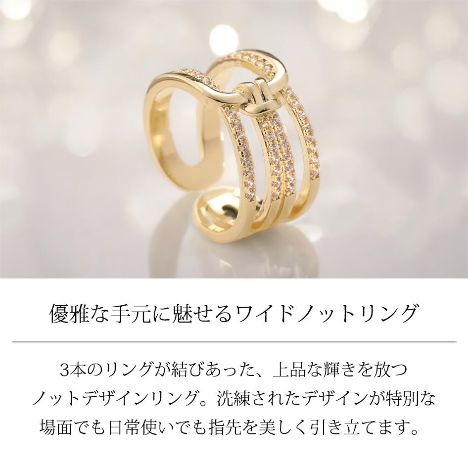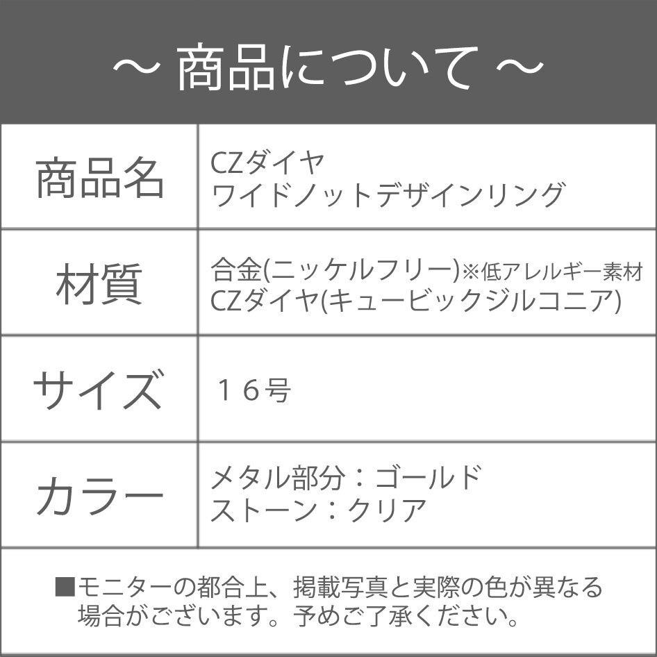 16号 / 新品 指輪 ノットリング レディース 結び目 ワイド 幅広 シンプル ゴールド 合金 ダイヤ CZ 人差し指 中指 薬指 女性 プレゼント
