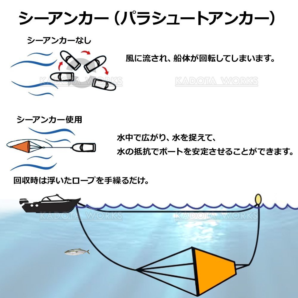 船の大きさに応じた、シーアンカーのサイズをご用意させて頂いております。