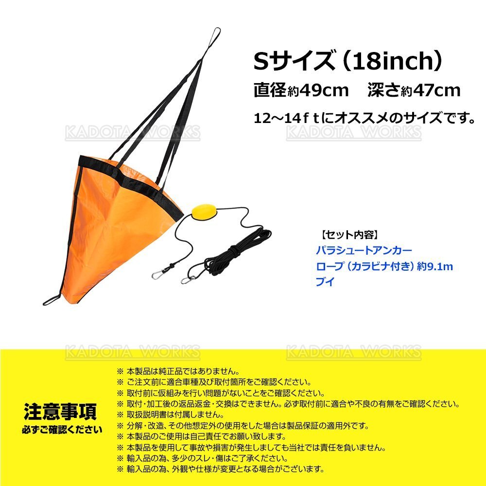 パラシュートアンカー×1、フロート(浮き、ブイ)×1、カラビナ付きロープ×1