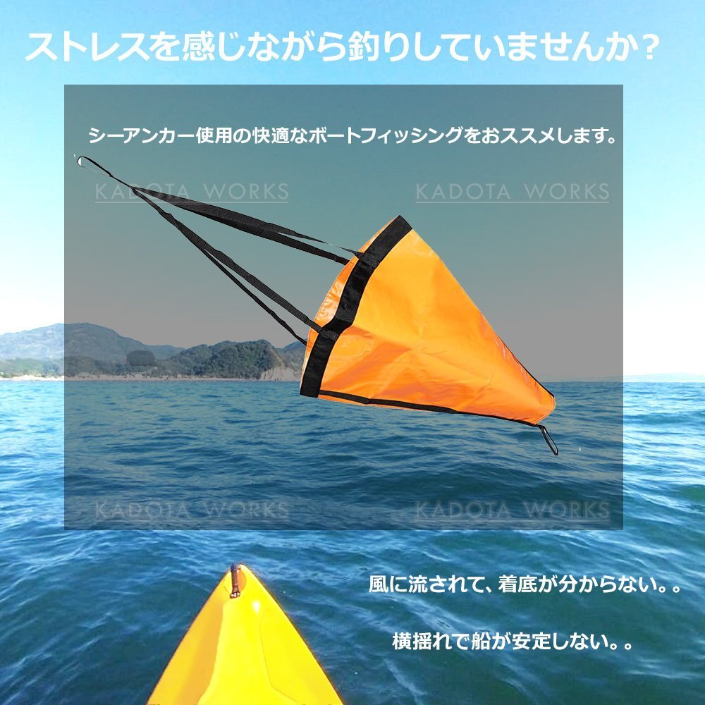 バラシュートアンカーPVC製、フロート、そしてカラビナ付きロープのセットですので、すぐにご利用頂けます。